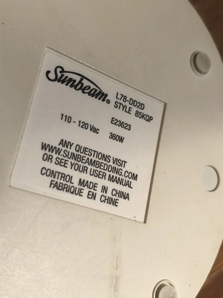 Sunbeam 85KQP Dual Electric Blanket Cord Replacement Controller