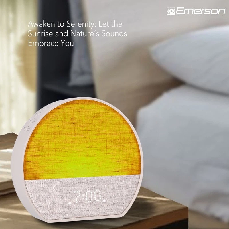 You may also like Tokai Analog Alarm Clock Beep Snooze Quiet Sweep Luminous Hands Battery Powered 46.31 USD 48.75 USD Free shipping 5% off Digital AM/FM Battery Powered Dual Alarm Clock Radio with AUX Input Black 22.46 USD 23.64 USD Free shipping 5% off Analog Alarm Clock Beep Snooze Quiet Sweep Luminous Hands Quartz Mid-Century New 46.31 USD 48.75 USD Free shipping 5% off Analog Bedside Alarm Clock Snooze Quiet Sweep Luminous Hands Battery Included US 46.31 USD 48.75 USD Free shipping 5% off AM FM Digital Clock Radio Dual Alarm Sleep Timer Battery Backup Compact Design 25.64 USD 26.99 USD Free shipping 5% off Digital Alarm Clock W/ Big Numbers Temperature Display USB Nightstand Decor 14.17 USD 14.92 USD Free shipping 5% off Classic Twin Bell Alarm Clock Vintage Metal Loud Bell Easy Read Dial Backlight 21.93 USD 23.08 USD Free shipping 5% off Digital Projection Alarm Clock LED Display Deep Sleepers Multi-Function Easy Use 19.0 USD 20.0 USD Free shipping 5% off Digital Alarm Clock LED Display Snooze Function Battery Powered Home Decor Gift 14.32 USD 15.07 USD Free shipping 5% off Digital Dual Alarm Clock W/ Green LED Display Snooze Function Battery Backup New 15.28 USD 16.08 USD Free shipping 5% off Digital Deep Sleep Alarm Clock 1.4in LED Display Snooze Function Battery Backup 15.28 USD 16.08 USD Free shipping 5% off LED Mirror Alarm Clock W/ Snooze USB Charging Portable Digital Time Display 15.2 USD 16.0 USD Free shipping 5% off Enjoy your sleeping experience as never before with the Emerson Sunrise Alarm Clock! With 4 soothing sounds and eight colors, you are sure to find that exact match to let you relax to the max. The 2 Wake Up Sounds and 5 level dimmer the Sunrise alarm will surely allow you to find the brightness that is best for you. This unit is equipped with Emerson's Patented SmartSet Technology that Automatically Sets Itself to the Correct Year, Month, Date, Day and Time as Soon as You Plug it In and After Every Power Interruption and automatically recognizes DST. With a Dot Matrix Display and additional features this unit allows you to enjoy your sleeping experience. Sunrise Alarm Clock with Nature Sounds and White Noise 4 Soothing Sounds and 2 Wake Up Sounds Sunrise Alarm Light Calming Sunset Light 8-Color Dimmable LED Décor Patented SmartSet Automatic Time Setting System Automatically Sets Itself to the Correct Year, Month, Date, Day and Time as Soon as You Plug it In and After Every Power Interruption, Auto DST and Leap Year Recognition Bluetooth V5. 4 Technology for Easy Pairing and High Speed Data Transfer up to 10M Range 4-Level Dimmer Control for Time Display 5-Level Dimmer Control for Sunrise Alarm Lights Dual Alarm with LED Dot Matrix Clock Display Wake-to-Buzzer Alarm, or Wake Up Light and Sound Wake-up to Sound Volume Control (V01-V16) Programmable Sleep-to-Music Timer (10-90 minutes) Snooze/ Repeat Alarm CR2032 Button Cell Battery (Included) Maintains Time & Alarm Settings Output Power: 2W x 1 @10% THD You may also like 4 Gauge 20ft Professional Booster Cables Tangle Free Flexible Durable Heavy Duty 40.25 USD 42.37 USD Free shipping 5% off Portable AM FM Radio W/ Headphone Output Belt Clip Battery Powered Travel New 17.84 USD 18.78 USD Free shipping 5% off Replacement Aquarium Filter Cartridges 6 Pack Activated Carbon Easy Change New 18.13 USD 19.08 USD Free shipping 5% off Colored Cardstock 65 lb Assorted Paper Crafting Printing Flyers 50 Sheets New 7.7 USD 8.11 USD Free shipping 5% off Large Multi-Level Cat Tree W/ Cozy Perches Scratching Posts & Condos Cats New 79.55 USD 83.74 USD Free shipping 5% off Exterior Paint Low VOC Fast Drying Mildew Resistant Good Coverage 400 sqft New 28.23 USD 29.72 USD Free shipping 5% off Bluetooth 32in Soundbar Home Theater System Remote Optical Input LED Indicator 59.27 USD 62.39 USD Free shipping 5% off Non Slip Chair Cushions Set of 4 Indoor Use Comfortable Support Durable Design 42.27 USD 44.49 USD Free shipping 5% off Wall Eagle Decor Indoor Outdoor Sculpture Easy Install Durable Patriotic Art New 78.94 USD 83.09 USD Free shipping 5% off Contemporary 1 Drawer Accent Table Living Room Bedroom Storage Solution New 66.36 USD 69.85 USD Free shipping 5% off Round Wood Toilet Seat Brushed Nickel Hinges StayTite Fastening System Durable 32.67 USD 34.39 USD Free shipping 5% off 15 Inch Artificial Olive Plant in Wood Finish Ceramic Vase Home Office Decor New 15.88 USD 16.72 USD Free shipping 5% off