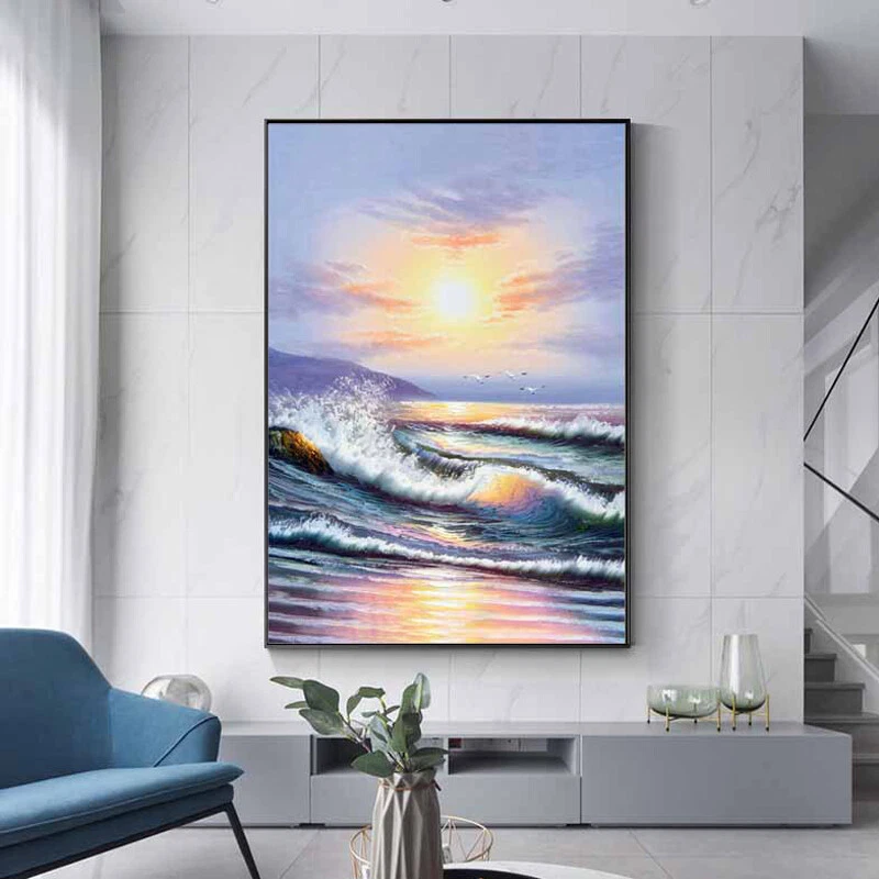 Sunrise Modern Hand Painted Oil Paintings Wall Art Decor Seascape Artwork Sea