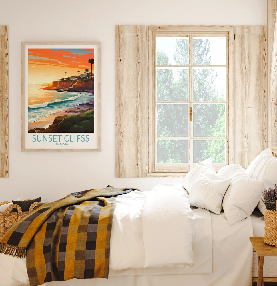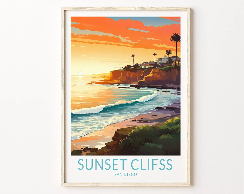 Sunset Cliffs San Diego Travel Wall Art Sunset Cliffs California Travel Poster San Diego Wall Art California Traveler Home Decor Material: Premium luster photo paper Print type: Inkjet printing One side printed + The finish provides the highest possible resolution and color saturation + Lasts up to 200 years in color and 400 years in black-and-white + Printed on high-quality resin-coated photo base paper medium + Posters can be hung with double-sided tape, tacks, or framed + Hand washing with a gentle cry cloth is recommended for extended durability I will hand select the best choice of paper for your chosen design to ensure top quality results for a beautiful, bright and luxurious print. All prints are sealed in cellophane slips for protection during transportation, and are shipped in a protective cardboard envelope.