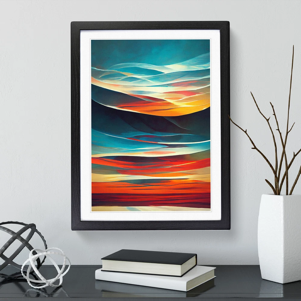 Transform your living space with our captivating framed wall art prints. Crafted in the UK, the stunning Sunset In Abstract No.1 framed print is designed to elevate your home decor. We utilise high-quality inks to ensure the colours of the artwork are rich, vibrant, and true to life. The print seamlessly fits within a contemporary frame, creating a stylish wall art picture that is ready to hang in your living room, lounge, bedroom, dining room and home office. Visit Our Shop eBay Message Framed Art Print Enhance your living space and showcase your individual style with our framed prints. Each design is printed upon premium art paper with fade-resistant inks, ensuring the colours remain rich and vibrant for years to come. The print is encased in a ready-to-hang frame, offered in black, oak, or walnut, and safeguarded by shatter-resistant Perspex. An ideal addition to your home, and the perfect gift choice. Like what you see? Visit our eBay store to see more. Premium Quality : The design is printed on quality art paper, enhanced with fade-resistant colours. Ready to Hang : The frame is pre-fitted with hanging hardware, making wall mounting simple, safe and secure. Frame Dimensions : A4 - 25 x 34 cm / A3 - 34 x 46 cm / A2 - 46 x 64 cm. Fast Shipping : Prompt, reliable UK-based dispatch. Customer Satisfaction : Our priority is your satisfaction which is why we offer a hassle-free return policy. Payment You can pay for your order safely and securely via credit or debit card, Apple Pay, Google Pay, and PayPal. Shipping Production times are 1 to 2 working days. Orders are sent via Royal Mail or Evri (depending on size). Returns For your peace of mind, we have a 30-day returns policy in place. Please, contact us for more details. At Big Box Art, we are dedicated to providing high-quality wall art and decorative homeware items. From the outset, we've focused on excellence in our products, service, and reputation, continually enhancing our standards. With an extensive selection of designs, you're certain to discover the perfect piece to suit your taste. ? Copyright 2021, Big Box Art. All rights reserved. Made with by eBayshopdesign.org