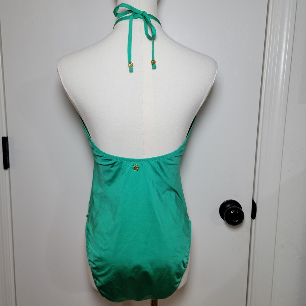 Sunshine 79 Gypset Solids High Neck One Piece Green Beach Swimsuit Size 12 Condition: New Without Tags Color: Seagreen (appears lighter in person) Measurements (from the website): Size: 12 Bust: 38.5" Underbust: 33" Waist: 30.5" Hip: 40" Torso: 67.5" Details: Make a statement with this Sunshine 79 Gypset Solids High Neck One Piece Swimsuit. The high neckline and chic silhouette are complemented by eye-catching gold circle jewelry details at the straps, adding an elevated and stylish touch. The seagreen color enhances the elegant vibe, perfect for both lounging by the pool and tropical getaways. Key Features: High neckline for a sleek, modest silhouette Gold circle jewelry accents for a touch of sophistication Soft, stretchy fabric for all-day comfort Full coverage bottom for added confidence Beautiful seagreen hue, ideal for summer and resort wear Pair with layered gold accessories and a straw tote bag for a polished, beach-ready look. --- Dreaming of desert vibes? 🌵Explore my closet for more boho treasures and unique finds!🤠 Hashtags: #Sunshine79Swimsuit #HighNeckOnePiece #SeagreenSwimsuit #GoldDetails #ChicSwimwear #BeachVibes #ResortStyle #SwimwearGoals #SummerFashion