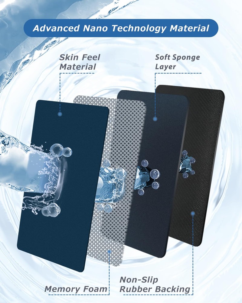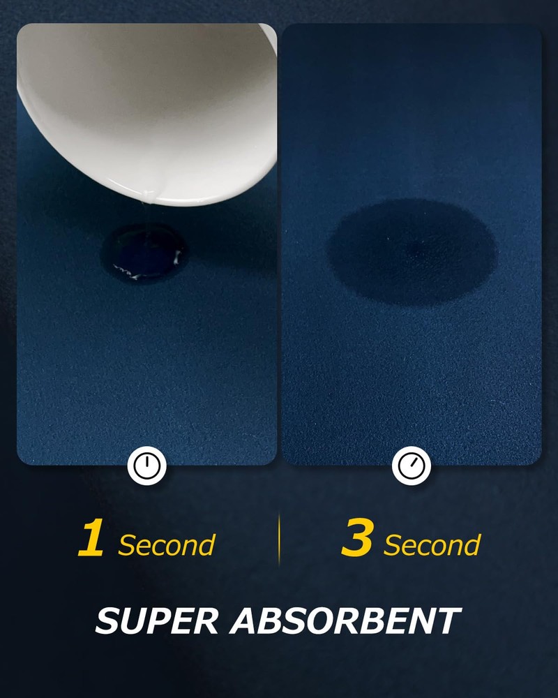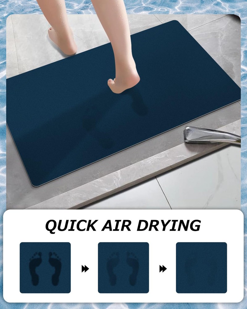 【Strong Water Absorption】This is a soft diatomaceous earth bath mat with advanced nano technology. When you come out of the bath or shower room, our bathroom rug can absorb moisture from the wet feet immediately, keep the floor clean and dry. 【Quick Drying】Due to countless tiny pores on the surface of the quick dry bath mat , it will absorb water immediately and watermarks can magically disappear in 1 to 3 minutes. The moisture stored in the tiny pores can evaporate quickly . 【Anti-Slip Bottom & No Risk of Tripping】non-slip rubber backing of the bath rug for bathroom helps to increase the friction with the ground, it can grip on wet and smooth floor tightly. This rubber backed bath mat minimizes the risk of slipping in children and the elderly. 【High Quality & No shedding】Our super absorbent bath mat is made of technical velvet, which surface is very soft and smooth. Unlike traditional chenille rugs for bathroom, our bathroom floor mat is more durable and will not have problems of shedding and fading. 【Dirt Resistant & Easy to Clean】The smooth surface design helps to resist dirt and hair. It only needs to be cleaned with running water, or simply wipe the washable bathroom rugs with a brush or sponge and wet cloth.