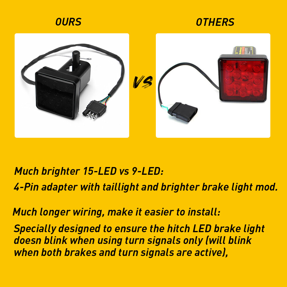 Features Built-in super bright smoked lens LED brake light provides added safety when your hitch is not in use Lamp size: 3-1/4 x 3-1/4 inches to fit 2" standard tow hitch and function as tail brake light or rear fog light Comes with a hitch pin with lock and foam lining to ensure a snug fit Unlike current 9-LED brake light w/ bright mode only, our 15-LED has brake AND running tail light; will not blink with turn signals (only) Optional 7-Way Round To 4-Way Flat Pin Adapter Description Super Bright Smoked Lens Light 15LED Trailer Hitch Cover Tail Brake Fog Light Features Built-in super bright smoked lens LED brake light provides added safety when your hitch is not in use Lamp size: 3-1/4 x 3-1/4 inches to fit 2" standard tow hitch and function as tail brake light or rear fog light Comes with a hitch pin with lock and foam lining to ensure a snug fit Unlike current 9-LED brake light w/ bright mode only, our 15-LED has brake AND running tail light; will not blink with turn signals (only) Optional 7-Way Round To 4-Way Flat Pin Adapter Description This page features a super bright, 15-LED brake light for the trailer hitch cover that provides added safety when the tow hitch is not in use. The lamp size is a convenient 3-1/4 x 3-1/4 inches to fit 2" standard tow hitch and functions as tail/brake light or rear fog light. The lamp comes with a hitch pin with lock and foam lining in order to ensure that the fit is snug. Unlike other 9-LED hitch mounted LED brake light with bright mode only, our 15-LED features a bright brake light, which will not blink along with your turn signals, AND a dimmer running tail light! Use Notes: The trailer hitch mounted LED tail brake light will not blink while your turn signals are exclusively in use. However, it will blink if both your brake lights and your turn signal lights are active. Item Specifics Brand Unbranded To Fit Brake Light LED 15LED Number of Bulbs 1 Bulb Size 3.25*3.25inch Bulb Size 3.25*3.25inch Payment Returns DESCRIPTION PAYMENT SHIPPING RETURN POLICY CONTACT US Shop Category Store Home LED Headlight ◈ H13 LED Reverse Light ◈ T15/921/W16W LED Side Marker Light Car Parts & Accessories Tail Light assemblies Other Hot Item Picture New List Item Smoked Pair Rear LED Marker Side White Lights Lamps For Charger Dodge 2015-2022 USD 18.99 For 2003-2009 HUMMER H2 Pickup LED Side Marker Light Front Rear Set Amber Red 4X USD 53.19 Fit 2003-2009 Hummer H2 Front+Rear LED Side Marker Lights Signal Lamps 4PC USD 53.19 For 2003-2009 HUMMER H2 LED Side Marker Light Front Rear Set Amber Red 4X USD 53.19 4x Led Front & Rear Amber Red Side Marker Lights For Hummer H2 2003-2009 USD 53.19 Help & Info Payment Policy Shipping Policy Return Policy FAQ About Us Super Bright Smoked Lens Light 15LED Trailer Hitch Cover Tail Brake Fog Light Features Built-in super bright smoked lens LED brake light provides added safety when your hitch is not in use Lamp size: 3-1/4 x 3-1/4 inches to fit 2" standard tow hitch and function as tail brake light or rear fog light Comes with a hitch pin with lock and foam lining to ensure a snug fit Unlike current 9-LED brake light w/ bright mode only, our 15-LED has brake AND running tail light; will not blink with turn signals (only) Optional 7-Way Round To 4-Way Flat Pin Adapter Description This page features a super bright, 15-LED brake light for the trailer hitch cover that provides added safety when the tow hitch is not in use. The lamp size is a convenient 3-1/4 x 3-1/4 inches to fit 2" standard tow hitch and functions as tail/brake light or rear fog light. The lamp comes with a hitch pin with lock and foam lining in order to ensure that the fit is snug. Unlike other 9-LED hitch mounted LED brake light with bright mode only, our 15-LED features a bright brake light, which will not blink along with your turn signals, AND a dimmer running tail light! Use Notes: The trailer hitch mounted LED tail brake light will not blink while your turn signals are exclusively in use. However, it will blink if both your brake lights and your turn signal lights are active. Payment Returns All rights reserved. On Apr 1, 2025 at 13:24:36 PDT, seller added the following information:
