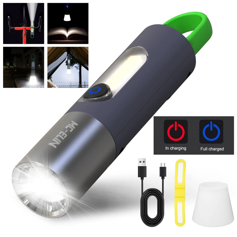 Super Bright LED Flashlight USB Rechargeable Camping Lantern Zoom Side Light BRIGHT & ZOOMABLE- The camping latern flashlight easily lights up an entire room or tent and its narrow beam makes it the perfect all-around flash light for everyday use and outdoor activities 4 MODES & DIFFUSER- Click the power button to switch between four brightness levels (low/medium/high/side light) With the diffuser, the light will be evenly softened and can be used as signal light and ambient light. COMPACT & TAIL HOOK PORTABLE- Easily fit this small flashlight in your pocket, backpack,for easy storage and quick access.Ideal for use around the house, dog walking, or camping. The push-type multifunctional spring hook is easy to carry and suitable for multiple scenes, freeing your hands. FREE BICYCLE SILICONE TIE RIBBON- These work very well for quick add-ons to the handlebars or down tube;With the flashlights the ones that screw tight break easy this is a better option. They hold cellphones, speakers, lights, well anything really. Great investment. It holds the flshlights securely whenever you are driving your bicycle on the dark night and only your flash light serves as your guide. You can use them to attach objects of various sizes and shapes to your bike! SIZE - Measuring 6.3 x 1.18 x 1.18 inches,3.5 oz,these small flashlights are outdoor, camping and hiking. They also work great as an everyday emergency light. INCLUDED- This high lumen flashlight includes (1) LED Flashlight USB Rechargeable, (1) Type C USB Cable, (1) Flashlight Bike Mount Silicone Strap Rubber Tie (1) Flashlight Diffuser.If you have any questions about this Camping Flashlight , please feel free to contact us by sending email, we would like to reply in 24 hours. If there is any product quality problem, we would like to provide full refund or resend you a new flashlight for replacement. Personalization Instructions: Super Bright :100% new Mini 500 lumen led Flashlight. Zoomable and portable flashlight, downsized for highest bright intensity. Enlarge to increase lighting area. Different usage modes: High/low/stroboscopic (for riding), always start high. Equipped with side lights and soft light, so that you can protect your eyes while car repair or reading Equipped with bicycle silicone lanyard, make your riding safer Built-in battery will give you more than an hour of brilliant bright light. You don't have to buy expensive batteries Perfect for cycling, camping, hunting and fishing On Jan 21, 2025 at 18:22:29 PST, seller added the following information: