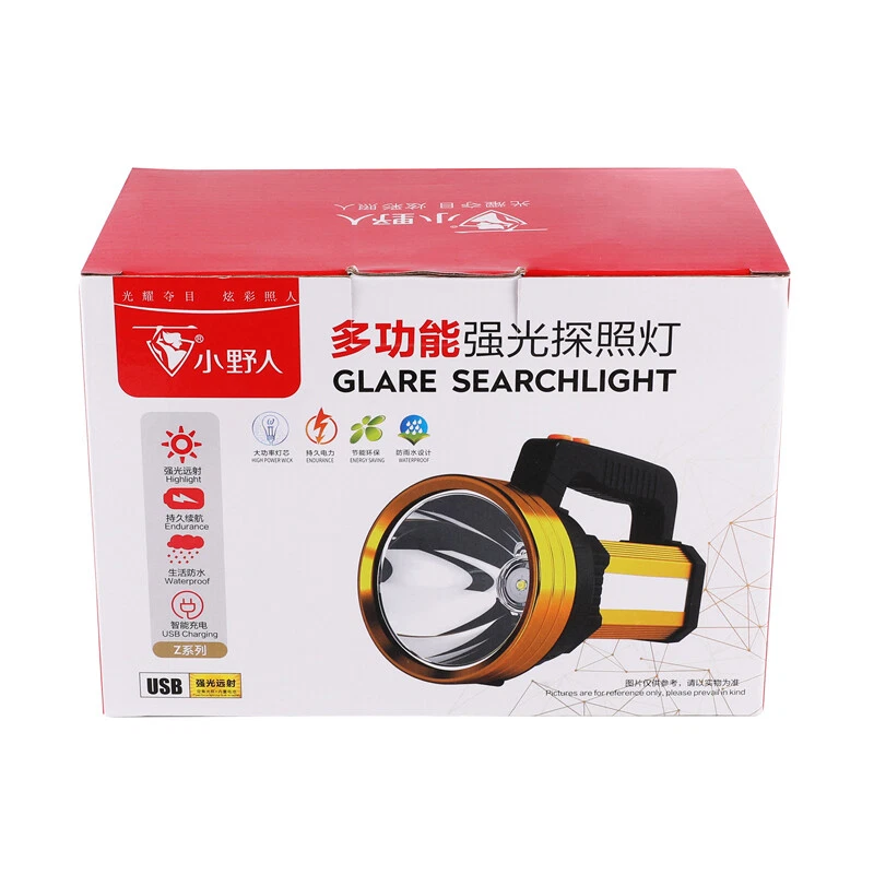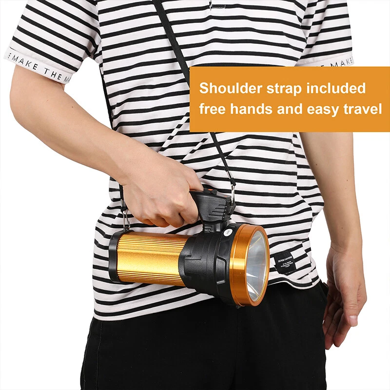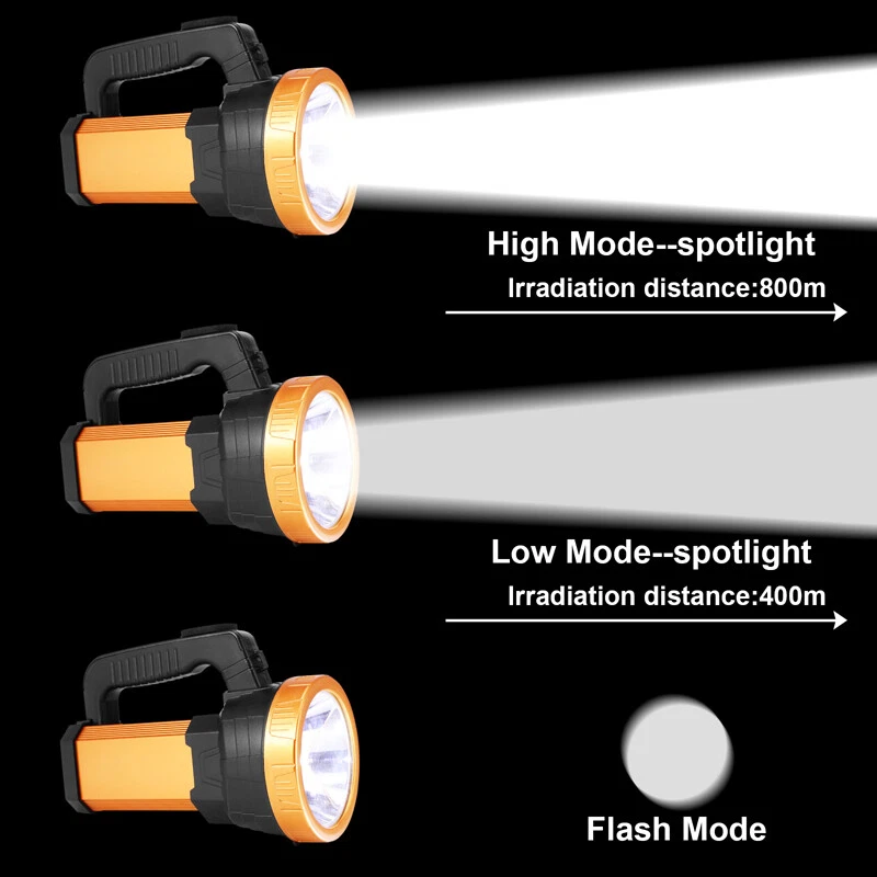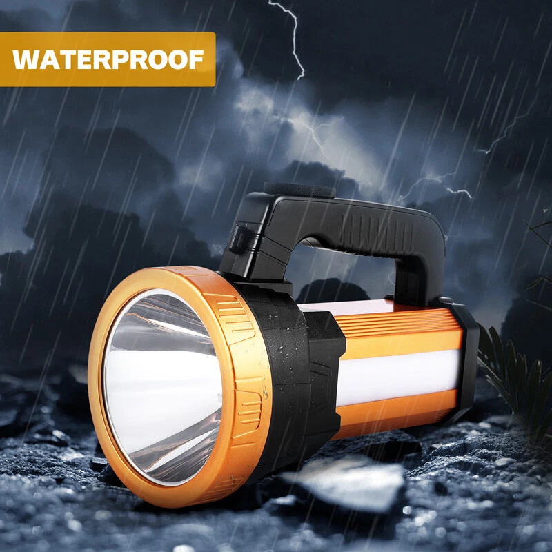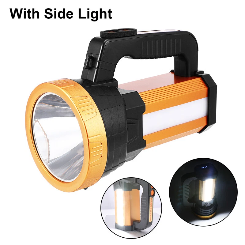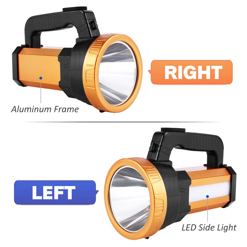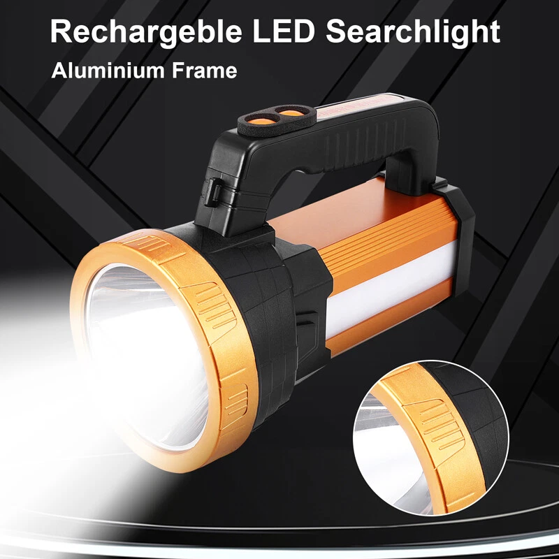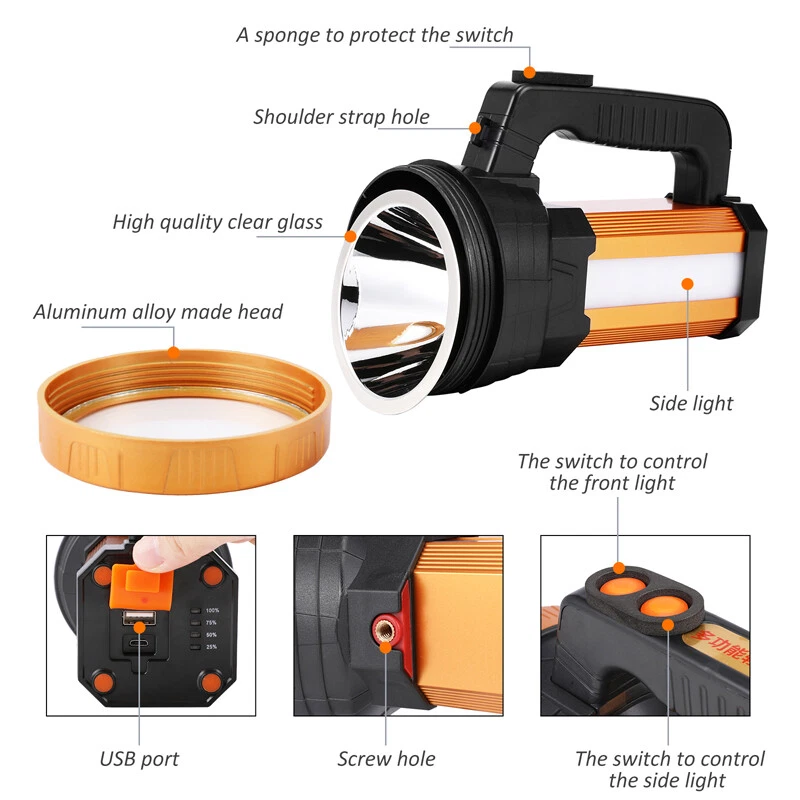 Super Bright LED Searchlight Rechargeable Emergency Spotlight w/Side Lamp 3-Gear Super Bright LED Searchlight Rechargeable Emergency Spotlight w/Side Lamp 3-Gear 100% Brand New & Excellent quality Free expedited shipping with tracking number provided Feature: * Small flashlight, light and convenient. * High quality, wear-resistant and drop-resistant. * Smart battery display: check real-time battery display at any time:25%-50%-75%-100% four-stage display. * Long battery life: large-capacity battery provides sufficient brightness for strong lighting. * Life waterproof: can deal with all kinds of rainstorms and live waterproof, the charging port is waterproof, accidentally falling water can protect the battery from water * UBS fast charging, compatible with multi-charge charging equipment, can also be used as an emergency power bank. * Suitable for work emergency, home lighting, reading, continuous lighting for camping. Specification: Material: ABS engineering plastic Flashlight size: 105*130*195mm/4.13*5.12*7.68inch Color: orange Power source: charging Lighting mode: strong light-weak light flashing-side light Power: 10W Light source form: LED Power generation method: charging 360 degree rotation: No Configure charger: yes Maximum range: more than 500 meters Applicable environment: hiking, camping, self-defense, teaching, searching, hunting, daily carrying, night riding, caving, night fishing, patrol Package including: 1 x Flashlight 1 x USB charging cable 1 x Shoulder Strap Payment Shipment Return Feedback Contact us Payment * We Accept Payment via PAYPAL ONLY . * Payment Must be Made within 4 Days of Auction Closing. * Non-Payment may Result in a UPI (Unpaid Item) being Put on Your Account. eBay will Automatically Close Your Account if You Accumulate 4 UPI's total. * Please List Your Special Requests ( Color, Size, Packages, etc. ) in the PAYPAL NOTES SECTION when you make payment. Shipment * Shipping will be handled in 24 business hours after payment got. Ship to PayPal Address only , please confirm it before paying. * Please leave your phone number in the address in case there is an address problem. Return * Returns and Exchange accepted within 60 Days. * Refund will be given as Money Back. * Free Return shipping. * Before you return the defective item,please email us for the RMA, and we will reply you in 24 hours in working days. If you do not get reply please check if your mail box has refused our reply or not, then send to us again, thanks! Feedback If you are satisfied with the transaction please remember to leave us a positive feedback (5-Star) will be much appreciated. Please DO remember to contact us before leaving the neutral (3 stars) , negative feedback (1-2 stars) or opening a case/dispute if any problem caused by the item . Normally your email would get replied within 24 hours on working day and your issue would be followed up carefully until we've reached a consensus! We will try our best to solve the problem and leave you a happy shopping mood here. Thank you! We are not only selling good items, but also selling with excellent after-sale service and a strong sense of responsibility. We will always try our best to find you a satisfactory solution if any problem takes place! Contact us Email muchbuy-outlet at Paypal registered email or ebay message.