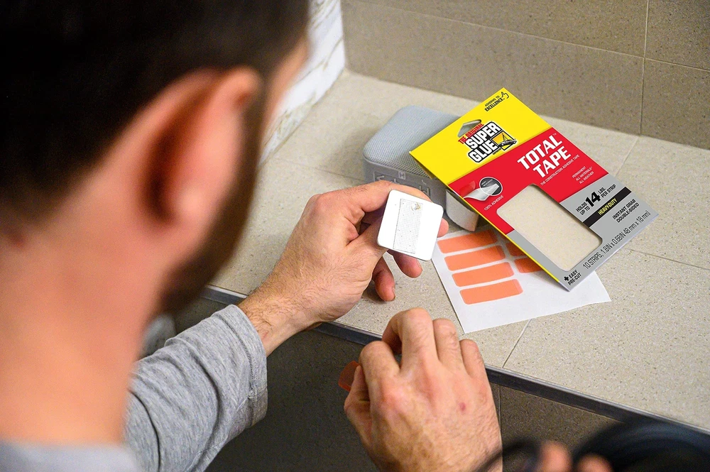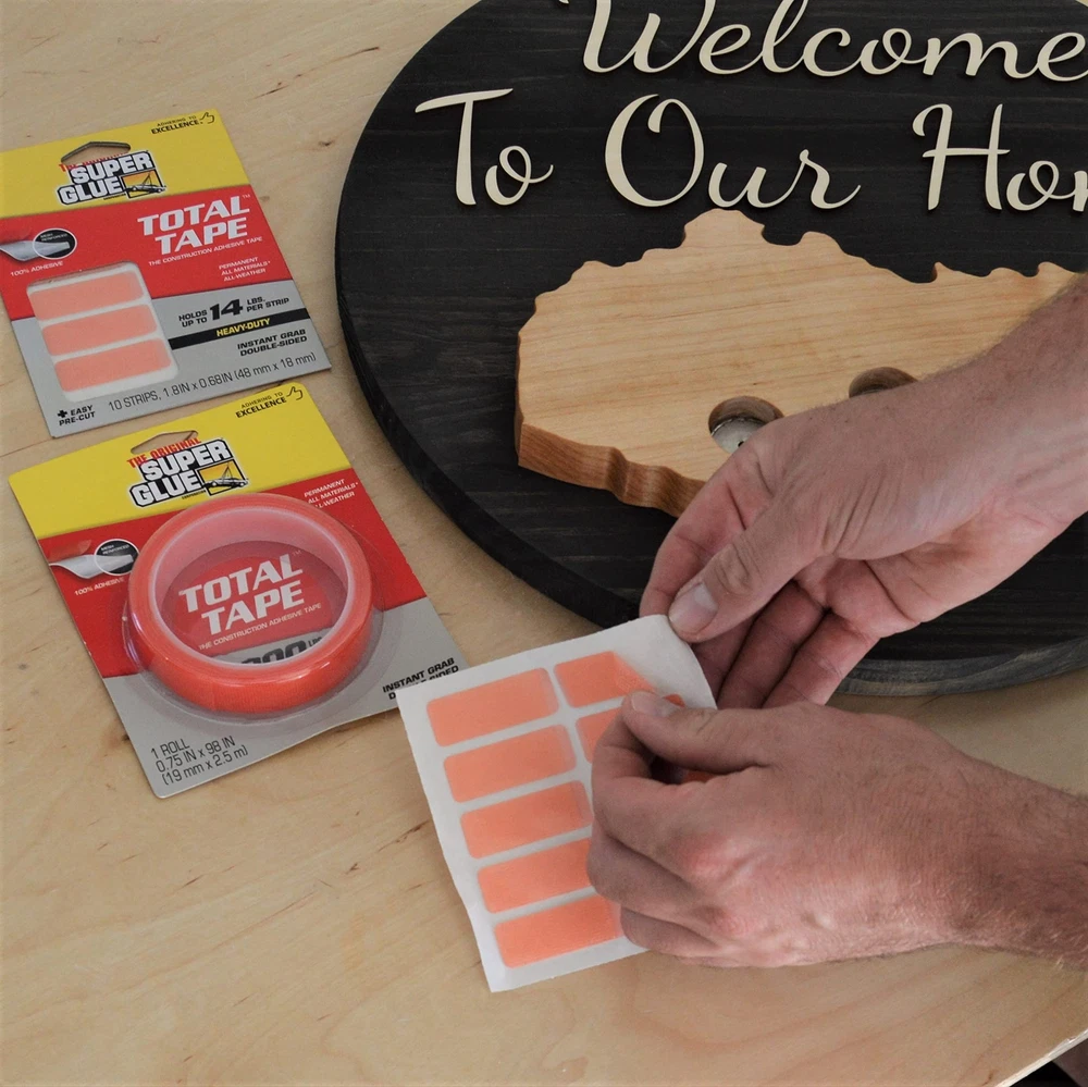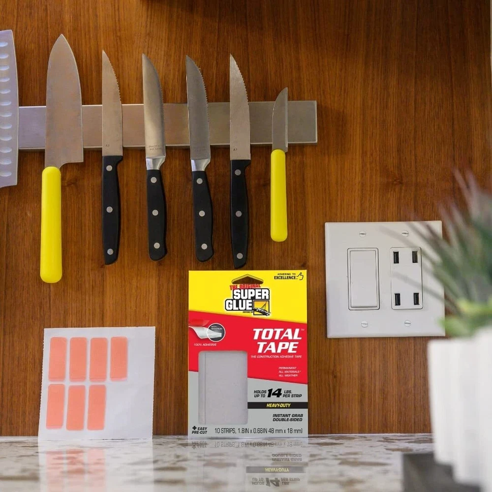 Easy as a tape, strong as a construction adhesive. Total Tape is a double-sided mounting tape with extreme strength, holding up to 14 lbs per strip. Instant grab and long-term endurance, its exclusive solvent-free formula is reinforced with a structural mesh, providing a permanent bond. Moisture resistance makes it great for indoor and outdoor use. Indoor and outdoor construction adhesive Super strong – holds 300 lbs. per roll and 14 lbs per strip Mesh reinforced mounting tape Easy-to-use double-sided tape Permanent bonding and long term endurance