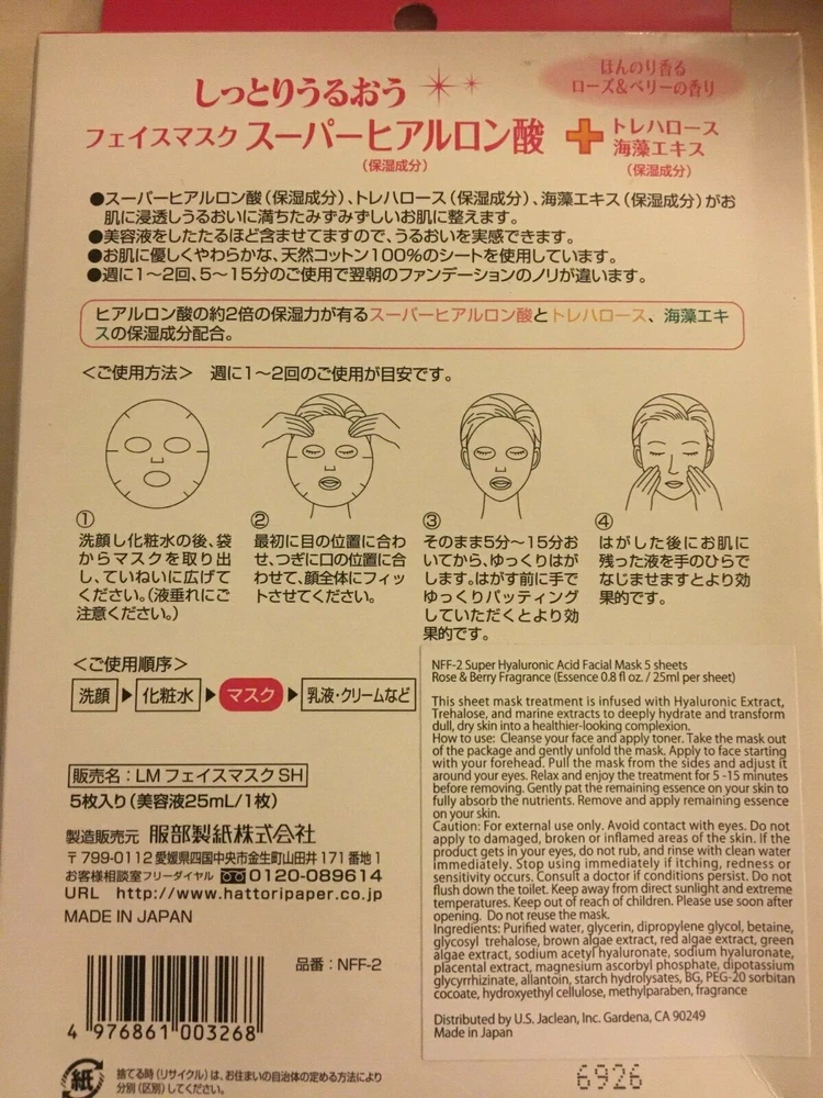 Super Hyaluronic Acid Facial Facial Masks 5 Sheets Rose & Berry Fragrance sealed!. Essence 0.8oz /25ml per sheet. Condition is New. Made in Japan. Shipped with USPS First Class.