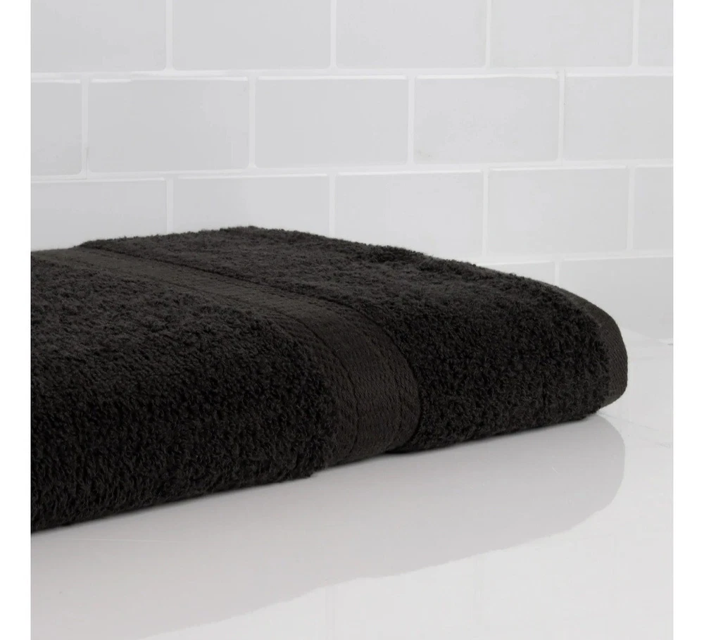 This is a single, solid black rectangular bath towel made of super luxurious 100% Egyptian cotton. It is extra soft with a GSM of 600-900, providing a high level of comfort and absorbency. The towel is part of a premium brand and features a braided, textured design for a touch of luxury. This bath towel is designed for adults and comes with one hand towel and one bath towel in the set, perfect for any bathroom or bedroom in your home.