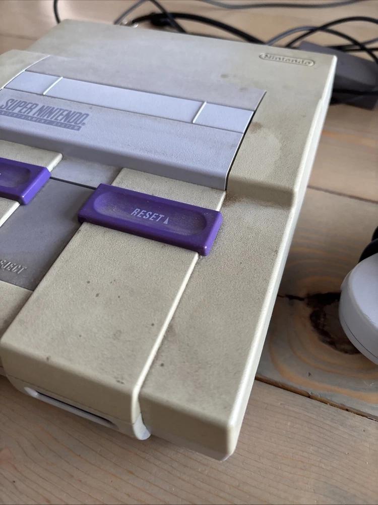 Used SNES that hasn’t been played in a while. I played all of the games on it the day before this listing. In general, the system worked. I played 8 different games. Sometimes, though, the game wouldn’t load on the first try. I don’t know if this is a console issue or game issue. It might work better with A/V cables instead of the original hookups too. System worked when tested but not 100% on the first try. Top of console is dirty even after cleaning.