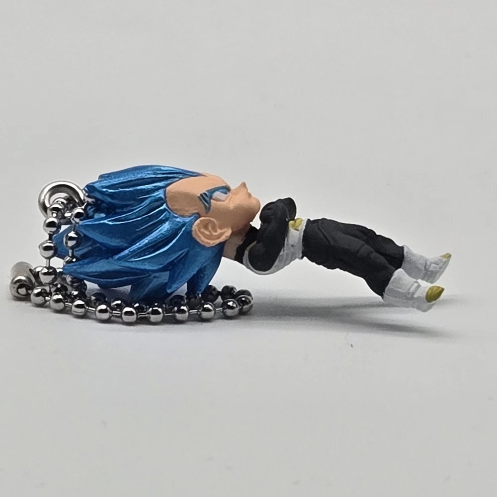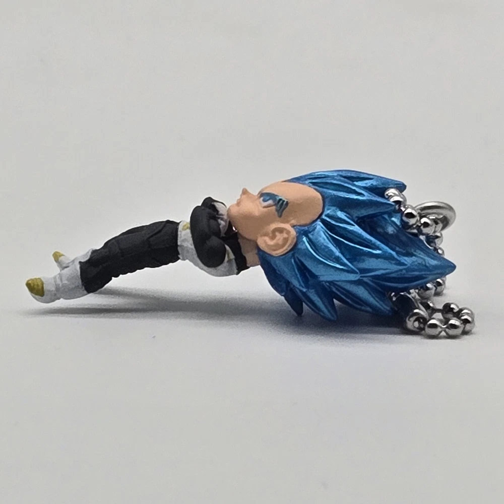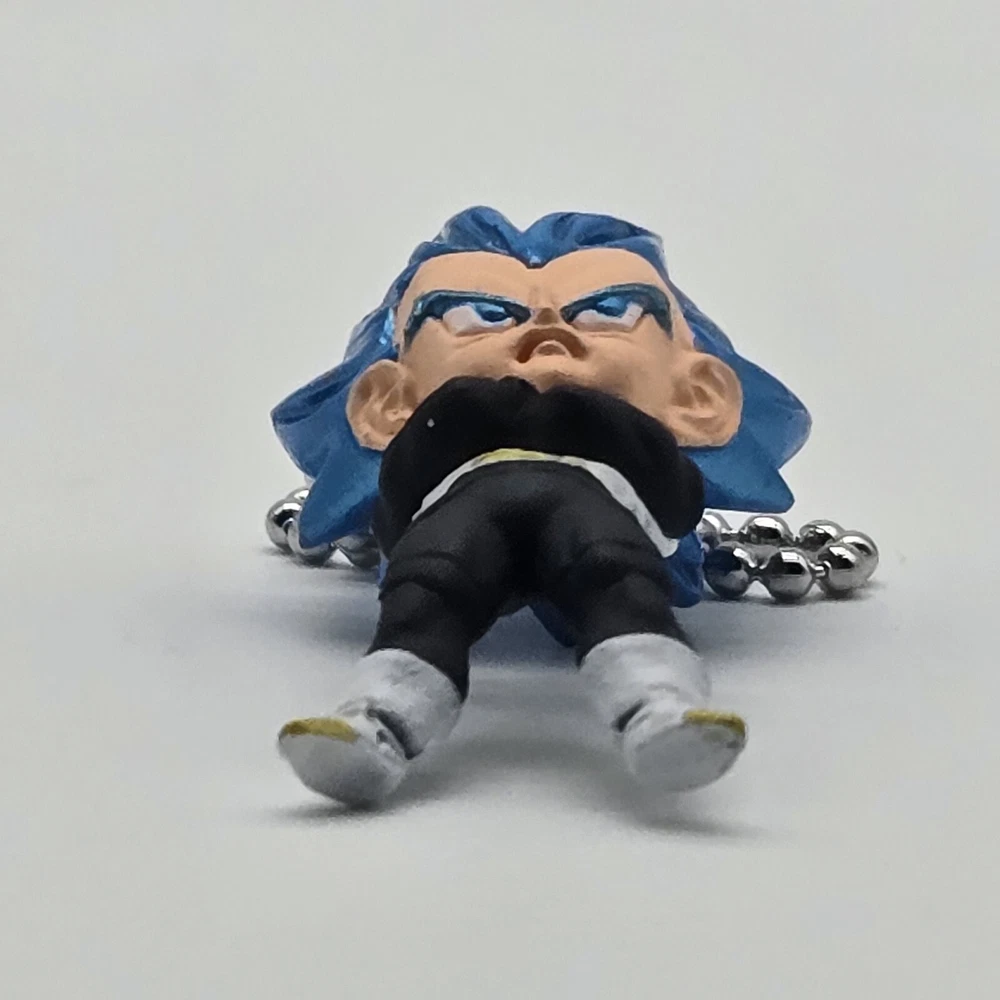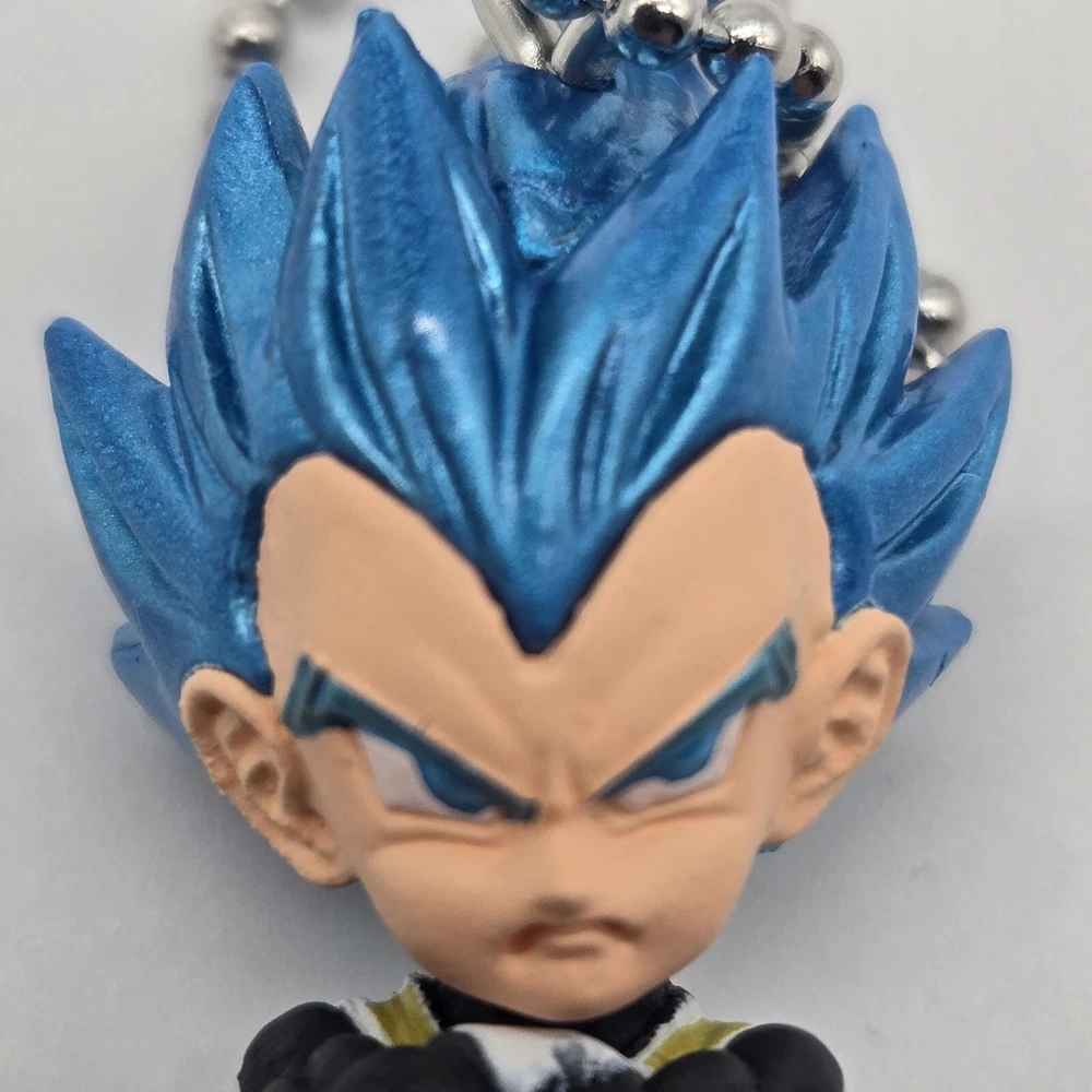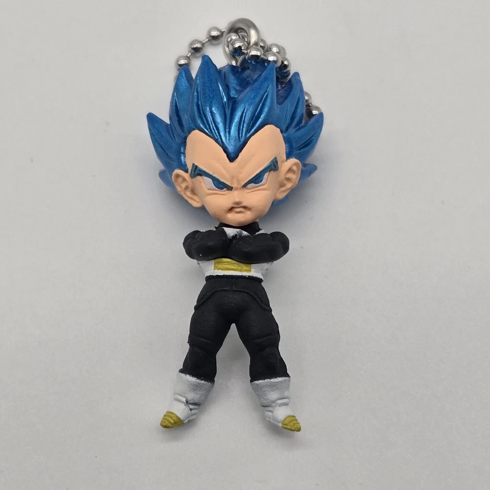 This limited edition Dragon Ball UDM Figure Keychain Toy features the iconic character Vegeta in his Super Saiyan Blue form. Made of high-quality PVC material, this keychain is a must-have for any Dragon Ball fan and collector. With vibrant blue coloring and intricate details, this Bandai-produced keychain is an ideal accessory for all occasions. It was manufactured in Japan and is part of the Anime & Manga theme. It is not personalized, signed, or intended for any specific convention or event. Get your hands on this unique Dragon Ball keychain now!