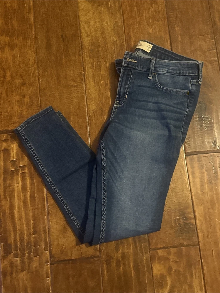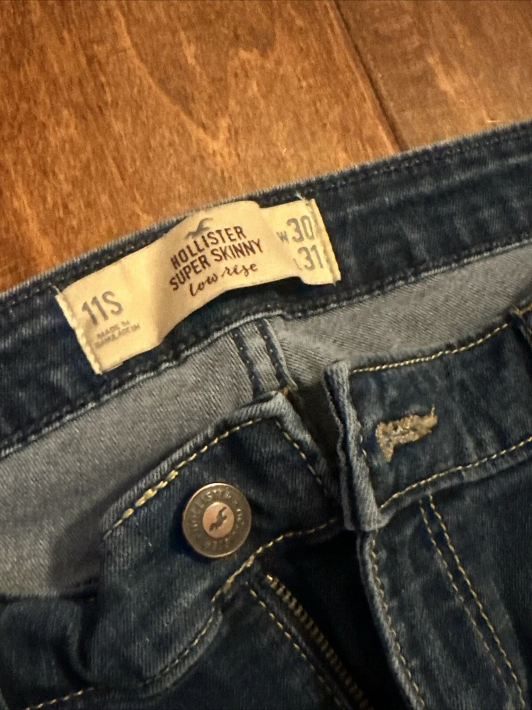 Super Skinny Low Rise Hollister Dark Wash Jeans Size 30x31 11 S. Condition is Pre-owned. Shipped with USPS Ground Advantage.