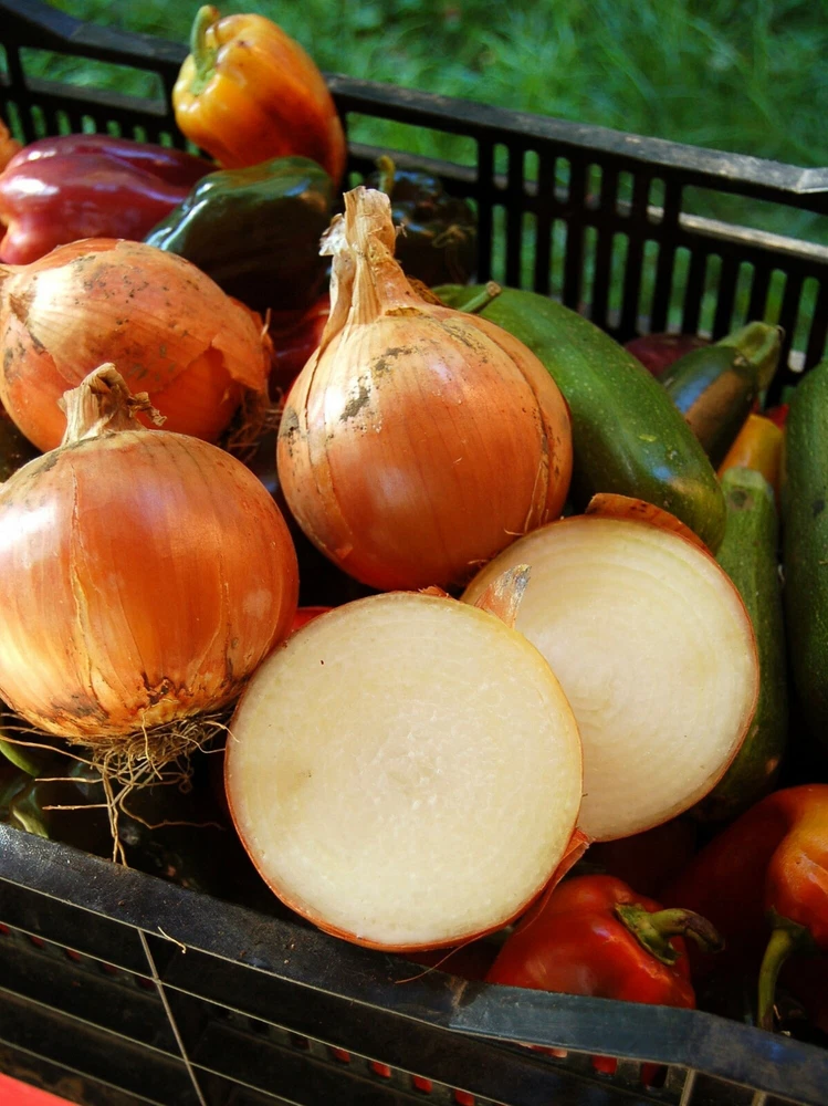 International shipping estimates are currently applied to the 4 lb size. Please message us for a custom quote. "Super Sweet" Candy Onion Sets are a great choice for gardeners who want tasty green onions early in the growing season and storage onions later in the summer . Super Sweet Candy is crisp and delicious, a huge globe-shaped onion with thick golden-brown skin, sugar-white flesh, and a sharp flavor. Excellent for storage. Onion sets are extremely quick, producing mild-tasting green onions in 2-4 weeks. About Onion Sets or Bulbs: Onion sets are small starter bulbs specifically for gardening. Onion sets are reliable and easy to grow, they are establish quickly, and are easy to plant compared to seeds or transplants. Plant in Fall or early Spring for a harvest in late Summer. Also Known As: Intermediate Day Onion, Noon Day Onion We ship in 1 business day. Shipped with USPS First Class Mail. Plant Name: Onion, Super Sweet Candy (Intermediate/Noon Day) Latin Name: Allium cepa Days to Germinate: 7-14 Days to Harvest: 90 (Plant Spring/Summer), 210-240 (Plant Fall/Winter) Growth Habit: Root, Noon Day USDA Zones: 2-12 Lifespan: Biennial Brand: TomorrowSeeds Sunlight: Full Sun, Partial Shade GMO: No Pollination: Heirloom, Open-Pollinated Fungicide-Treated Seeds*: No Seeds Packed For**: 2024 * Fungicide-treated seeds protect the seedlings from diseases until they are up and growing. Do not eat treated seeds. **Seeds are freshly packed for the growing season of the year listed. Seeds are still viable beyond pack date. Store in a cool and dry location such as the refrigerator or basement to best preserve germination rates. Planting Instructions: Soil Preparation and Fertilizing: Choose an area with well-draining soil and receives full sunlight each day. When it is dry enough to not stick to garden tools, work the soil. Before seeding or transplanting, remove all rocks and trash from the soil, then dig or plow the soil 8-10 inches deep and rake up several times to break up large clods. At this point, you may optionally spread 2-3 pounds of a complete fertilizer per 100-square-feet of garden area. Measure and spread the fertilizer, then mix it with the top 3-4 inches of soil. Rake until smooth. Tip: If you live in an area with heavy clay or hard soil, add a 1 inch layer of compost to improve soil texture. Planting: Onions are a cool-season crop and can stand temperatures well below freezing. They may be planted from seeds, from small bulbs called sets, or from transplants. Seeding costs the least but takes longer before onions are ready. If starting onions from seeds, you may start them indoors about 6 weeks before you plan to transplant them to the garden. Onion seeds need temperatures of at least 50°F (10°C) to germinate properly. Or, you may direct sow onion seeds outdoors by planting them 1/4 inch deep during October through December (for biggest bulbs in a May/July harvest). Place the seeds 1 inch apart in rows spaced 1-2 feet apart. When the plants are about 6 inches high, thin them to 1 plant every 2-3 inches. You may eat the extra plants as green onions. When using sets or transplants, plant October-February (for biggest bulbs in May/July harvest). Plant onion sets with the point end up 3/4 inch deep and 3 inches apart. Try not to transplant onions more than 1 inch deep. As the cold chill of winter arrives, the onion plants go dormant. Then, as the temperatures and soil warm again in early spring, the onions come back to life. Seeds : Planting Depth: 1/4 inch Within-Row Spacing: 1 inch, then 2-3 inches Between-Row Spacing: 1- 2 feet Bulbs/Transplants : Planting Depth: 3/4 inch Within-Row Spacing: 3 inch Between-Row Spacing: 1- 2 feet Care During the Season: Watering: Watering once a week is usually enough in the Spring. You may need to water more often during dry, windy weather. Slow, deep watering helps the root system grow strong. Weeding and Pruning: Weeds are easy to pull or cut when they are 3-4 inches tall. Try not to let weeds or grasses grow large because they will compete with onions for nutrients. If hoeing to remove weeds, be careful not to cut too deeply as cutting the feeder rooters may slow the plant's growth. It is better to pull by hand when possible. Fertilizing: When the onion plants have 5-6 leaves, you may optionally apply fertilizer again to help grow larger plants and bigger bulbs. Each leaf forms a ring in the onion bulb. More leaves means more rings and larger bulbs. Use about 1/2 cup of fertilizer for each 10 feet of onion row. Scatter the fertilizer evenly between the rows around the plants. Then water the onions after adding the fertilizer. Insecticides: Onions have few insect problems. However, thrips, which are very tiny insects, may be found between the center leaves. Many Insecticides are available in garden centers for use if needed. Bt-based insecticides and sulfur are organic options that can be used. Sevin is a synthetic insecticide option. Before using a pesticide, please read the label and always follow cautions, warnings and directions. Diseases: Diseases may be problem on onions. Brown leaf tips or brown spots on the middle and lower parts of leaves may be caused by plant diseases. Sulfur has fungicidal properties than can help control many diseases. Neem oil and other fungicides are available for use. Please always follow cautions, warnings, and directions. Harvesting: Onions seeded in October/December or set/transplanted in January/February should produce bulbs in May/July. If used as green onions, they may be picked from the time they are pencil size until they begin to form bulbs. For dry-bulb onions, let the plants grow larger. The onions are ready when the main stem begins to get weak and fall over. Pull the plants out of the soil. Leave them lying in the garden for about 1-2 days to dry. Then remove the tops and roots and let them keep drying in baskets or boxes. Onions can be stored in a refrigerator crisper or in a dry, airy place such as 