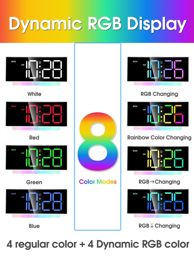 Despertador súper ruidoso con vibrador para dormir,quienes duermen profundamente Features: 3 modos de activación: elija entre nuestro timbre extra fuerte de 95 dB, súper vibrador o combine ambos para una poderosa experiencia de activación. Perfecto para personas con sueño profundo, personas con discapacidad auditiva y personas sordas. Potente vibrador con cable y volumen ajustable: El reloj incluye un vibrador con cable de 198 cm que se puede colocar debajo del colchón para despertarte sin molestar a los demás. Con un volumen máximo de 105 dB y 4 niveles ajustables, es ideal para despertar eficazmente a niños, adolescentes y estudiantes. Pantalla RGB dinámica y luz nocturna: Disfruta de 8 pantallas de colores diferentes y una luz ambiental arcoíris de 7 colores con este adorable reloj, perfecto para niños y niñas, que añade un toque moderno y divertido a cualquier decoración de escritorio. Características básicas: Este despertador eléctrico cuenta con alarmas duales, función de repetición de 10 minutos y puerto USB para cargar el teléfono. También ofrece formato de 12/24 horas y modo entre semana/fin de semana. Alimentación por enchufe y batería de respaldo: Este reloj compacto se alimenta mediante el adaptador de corriente USB incluido, lo que ofrece la comodidad de un diseño enchufable. También incluye batería de respaldo, por lo que no necesitarás... Para restablecer la hora y la alarma tras un corte de luz. Fácil de usar: El despertador está diseñado para un uso sencillo con botones de configuración intuitivos, lo que lo hace adecuado para personas de todas las edades, incluyendo niños y personas mayores. Cuenta con funciones actualizadas como vibración, alarma dual, regulador de intensidad, puerto de carga USB y un diseño moderno, lo que lo convierte en la opción perfecta para familiares, amigos e hijos. SHIPPING We are always working hard to ensure your package arrives as soon as possible. Please understand that some factors like weather, high postal traffic, and the performance of shipping companies are outside of our control. We offer free shipping to the lower 48 states and ship within 3 business days of payment, usually sooner. We do not accept P.O. Boxes. Please provide a physical address.