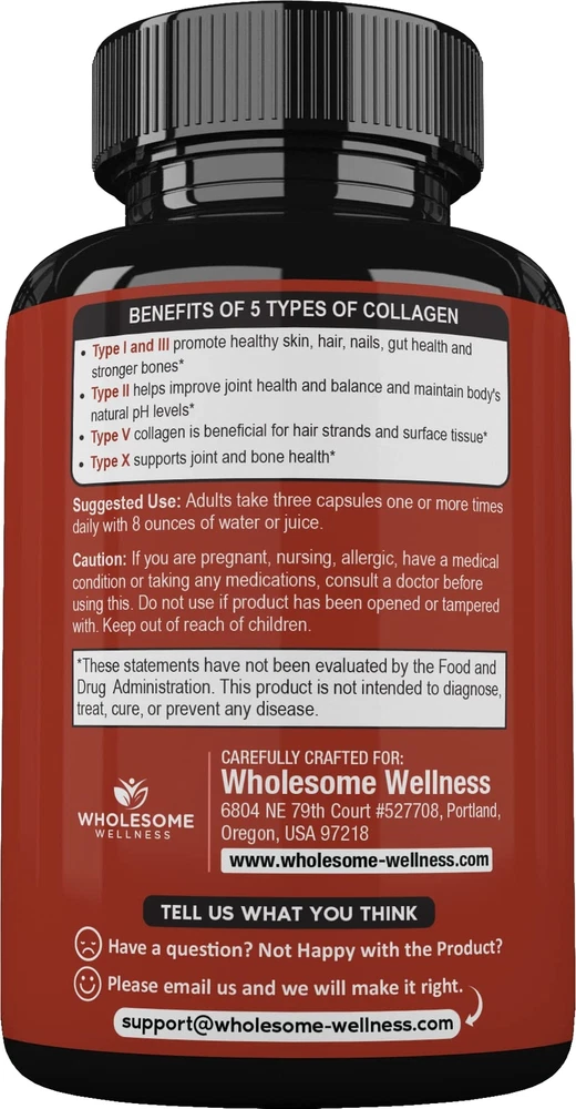 Super-Absorbable Multi Collagen with Ogranic Herbs Bioperine for Bio-Availability (90 , 2000MG per serving) is a complete source of important bone broth and collagen peptides type I, II, III, V and X. Our special formula with organic herbs and Bioperine helps maximize absorption and bio-availability for a stronger and quicker effect. Our advanced multi collagen offers a high quality blend of grass-fed bovine, chicken, certified wild fish, and egg membrane collagen.Organic Herbs & Bioperine for maximum absorption & bio-availabilityHydrolyzed Collagen Peptides from Grass-Fed BeefCollagen from Chicken Bone BrothHydrolyzed Collagen Peptides from Wild FishClinically Studied Eggshell MembraneProudly made in the USA in an approved GMP facility, 3rd party lab tested & certified. Try risk-free! Maximum Absorption & Bio-Availability - Organic Herbs and Bioperine help maximize absorption and bio-availability for a stronger and quicker effect from collagen. Super-Absorbable All-In-Super Collagen Blend - Your Collagen needs are covered with all 5 types of collagen hydrolysate, ultra premium bone broth, super absorbent collagen with a high-quality, potent, blend of 100% grass-fed beef, chicken, certified wild fish, and eggshell membrane collagen, providing collagen types I, II, III, V and X. Don’t settle for just Types 1 and 3 when you can have all 5 in easy-to-take collagen for men and women. Amazing Collagen Benefits From All 5 Types of Collagen. Values - Made in USA, GMP-Certified Manufacturing, 3rd Party Lab Tested for Purity & Potency, 100% Hydrolyzed, Grass-Fed Beef, Certified Wild Fish, Organic, Gluten-Free, Vital Ingredients, GMO-Free, Raw, Peanut-Free, Dairy-Free, Soy-Free, Herbicide-Free, Pesticide-Free, Paleo-approved. Easy and convenient to take compared to ancient collagen proteins peptide . As a small family business, we fully understand the uncertainty and risk of trying new products. This, together with our confidence that you will be happy with our best Multi Collagen , we offer you a Satisfaction , no questions asked.