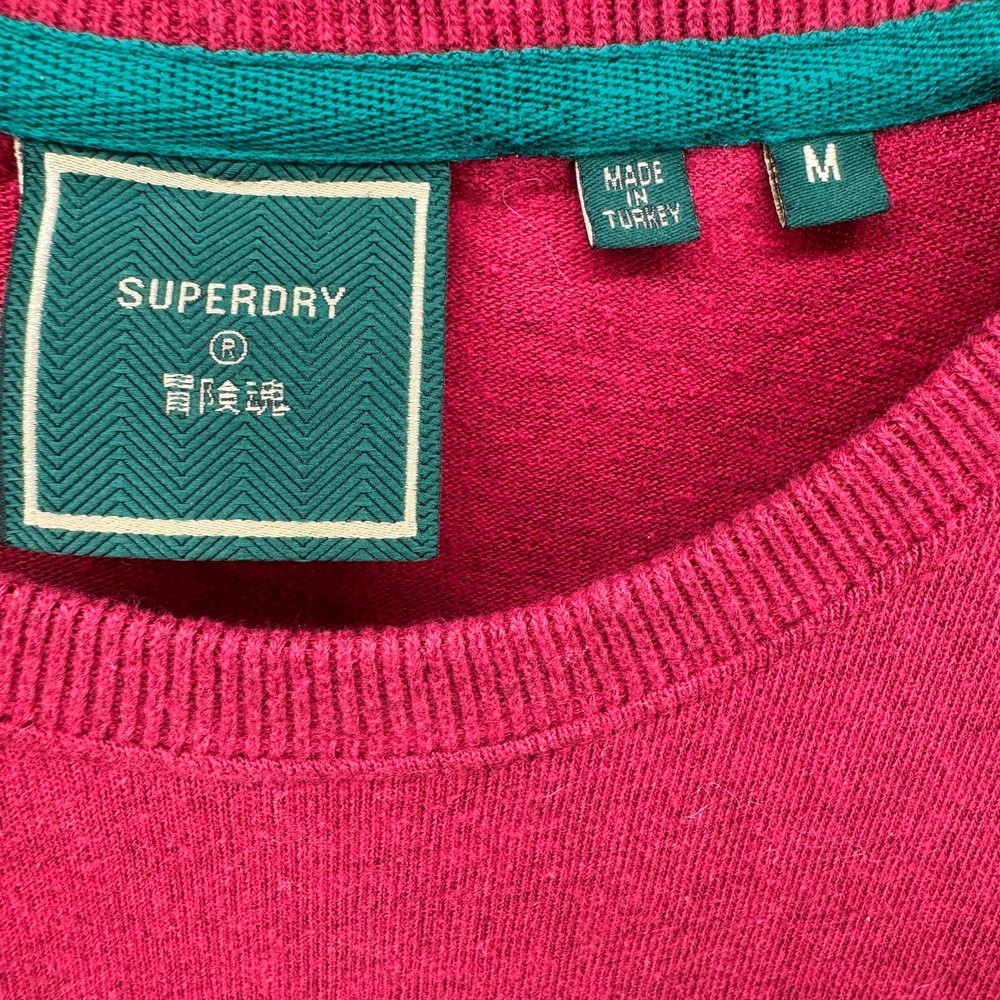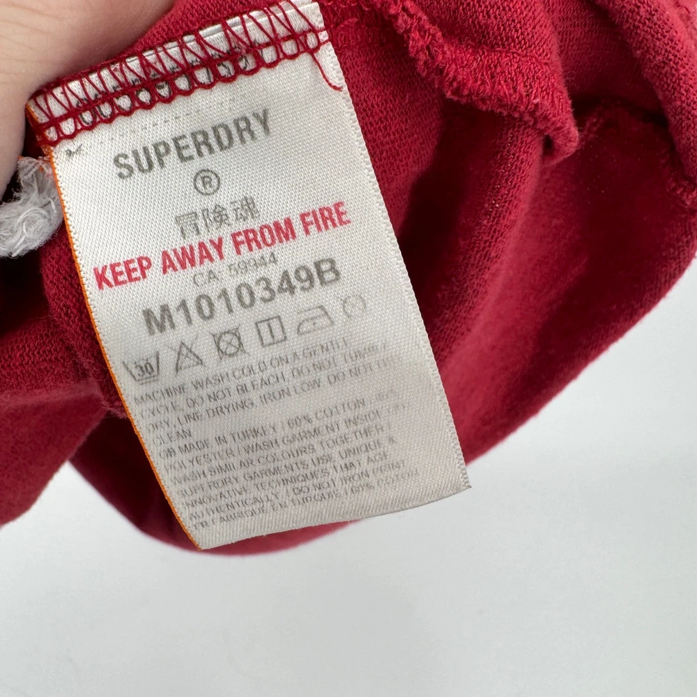 Superdry T-Shirt Mens Medium Red Short Sleeve Varsity Logo Front 03 Back Tee Slim Fit Very good condition, see all pictures for views. •Pit to pit: 19" •Shoulder to hem: 27" Thank you for your purchase, we appreciate you!