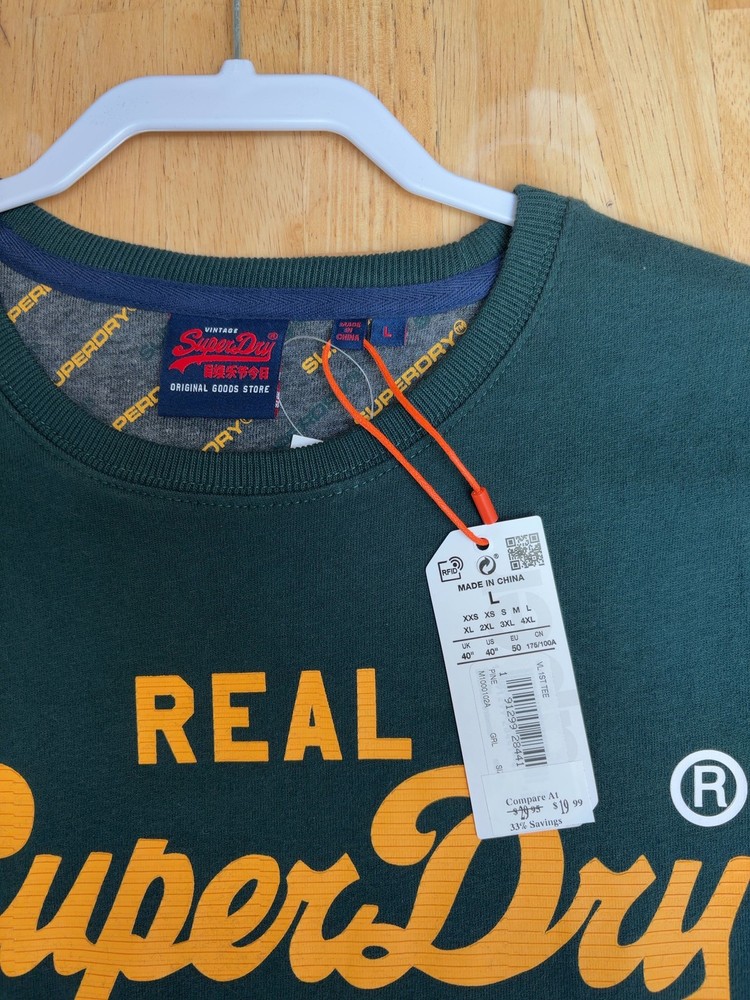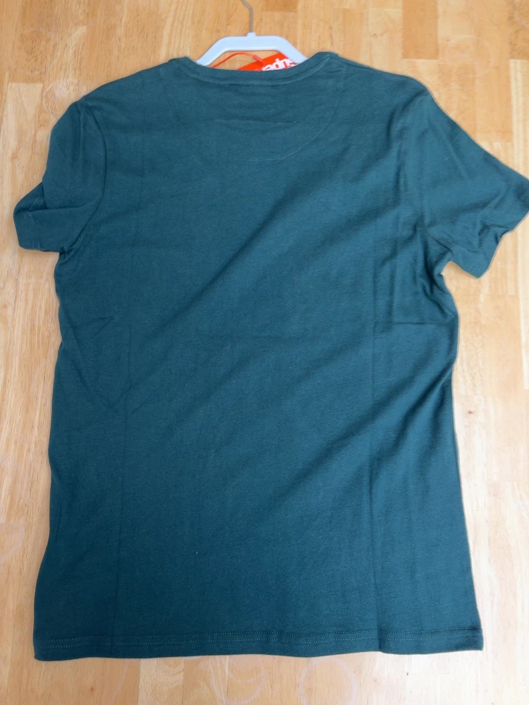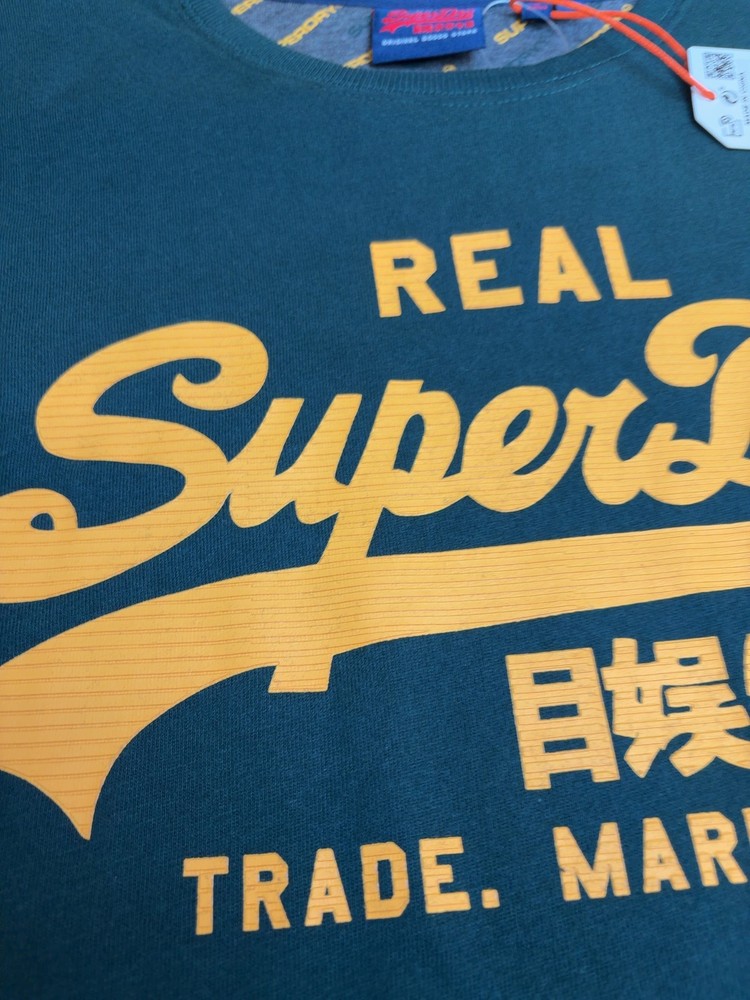100% organic cotton t-shirt featuring relaxed fit with printed vintage Superdry logo in orange on enamel green. Ribbed crew neck, short sleeves, machine washable.