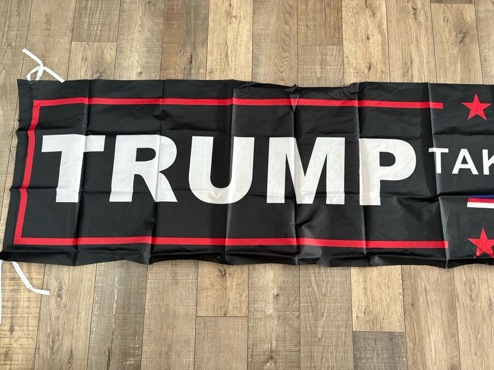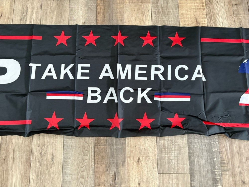 Take America Back Trump 2024 fence/yard flag— flag/banner has ties on each corner and measures approx 115x 20