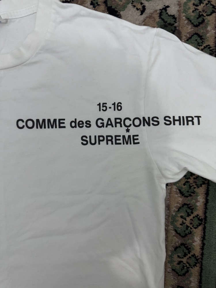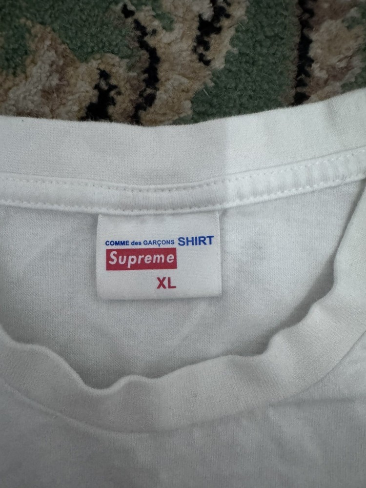 Crafted for the discerning wardrobe, the Supreme Comme Des Garcons CDG Long Sleeve T-shirt offers a seamless blend of style and comfort. In a crisp white hue, this XL men's tee is a versatile addition to any ensemble, embodying a classic yet contemporary aesthetic. Its round neck and long sleeves make it an ideal choice for all seasons, ensuring you stay comfortably on-trend. The t-shirt is made from premium cotton material, promising breathability and ease of care. It features a solid pattern that exudes a minimalist charm, complemented by the Supreme brand's understated yet iconic styling. Whether layered or worn standalone, this piece is a staple for those who appreciate a balance of casual sophistication.