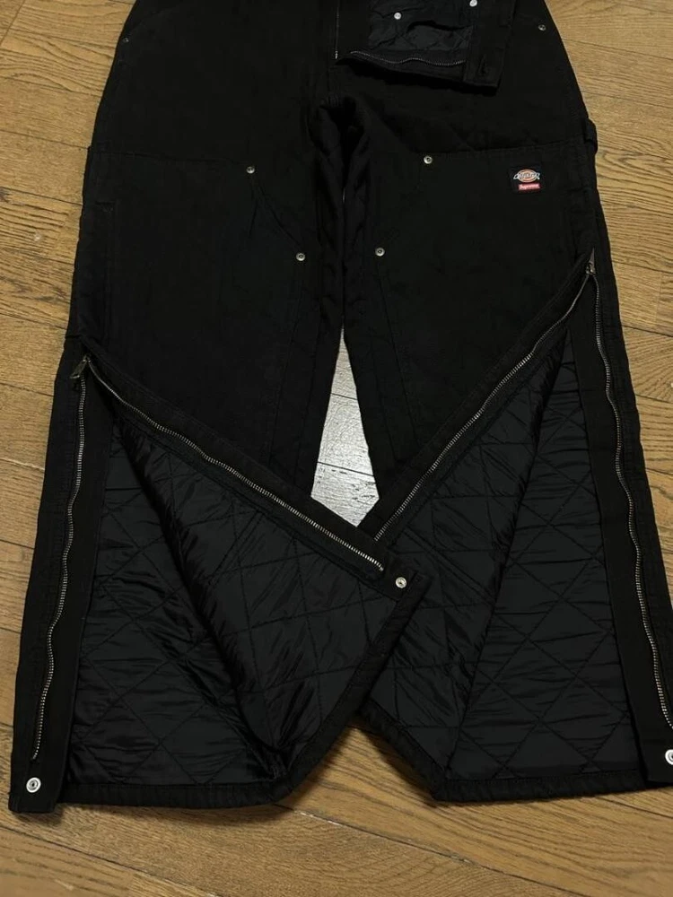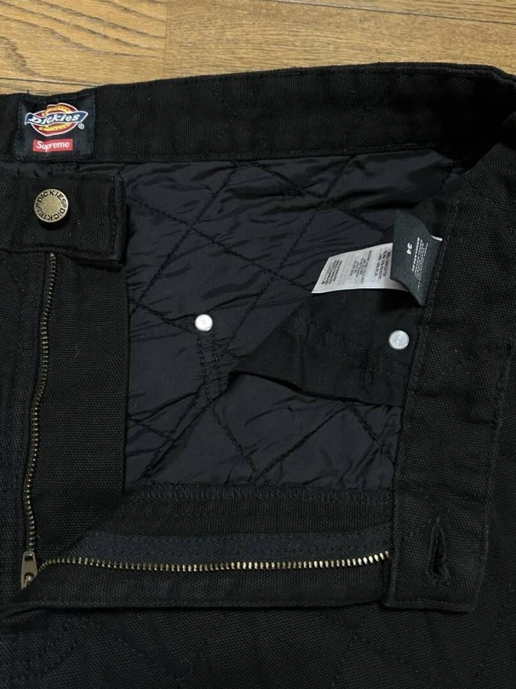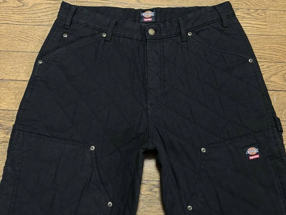 Supreme DICKIES выстеганный двойной колена художник брюки хлопок размер 34 XL черный б/у
