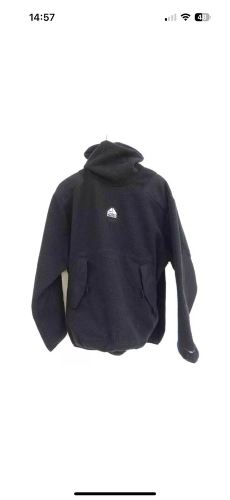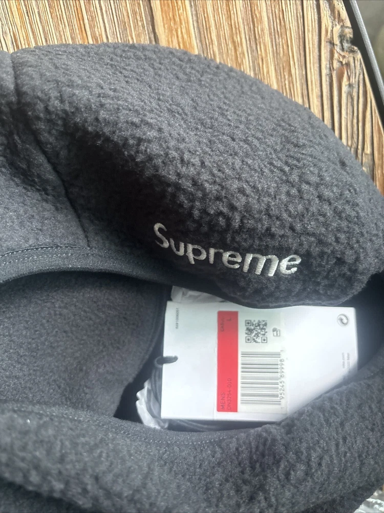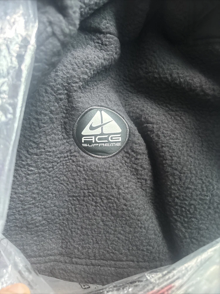 Stay warm and stylish with this Supreme Nike ACG Fleece Pullover in Black, featuring a bold Hype Box Logo on the front. Made from soft fleece fabric, this pullover is perfect for everyday wear. The regular fit and size Large make it ideal for men who appreciate comfort and statement streetwear. Add this iconic hoodie to your activewear collection and elevate your casual look effortlessly.