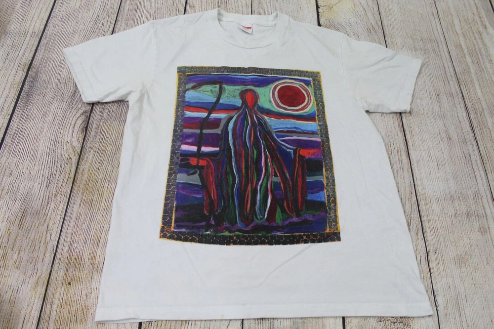 This listing is for a Supreme SS19 Reaper Tee, size medium. This item is in good used condition and still has lots of life left. There is a very small stain on the bottom of the front (penny shown for scale), but there are no rips, holes, or other major flaws. See pictures. Don't miss out on this great deal! Please contact me with any questions. Listing and template services provided by inkFrog