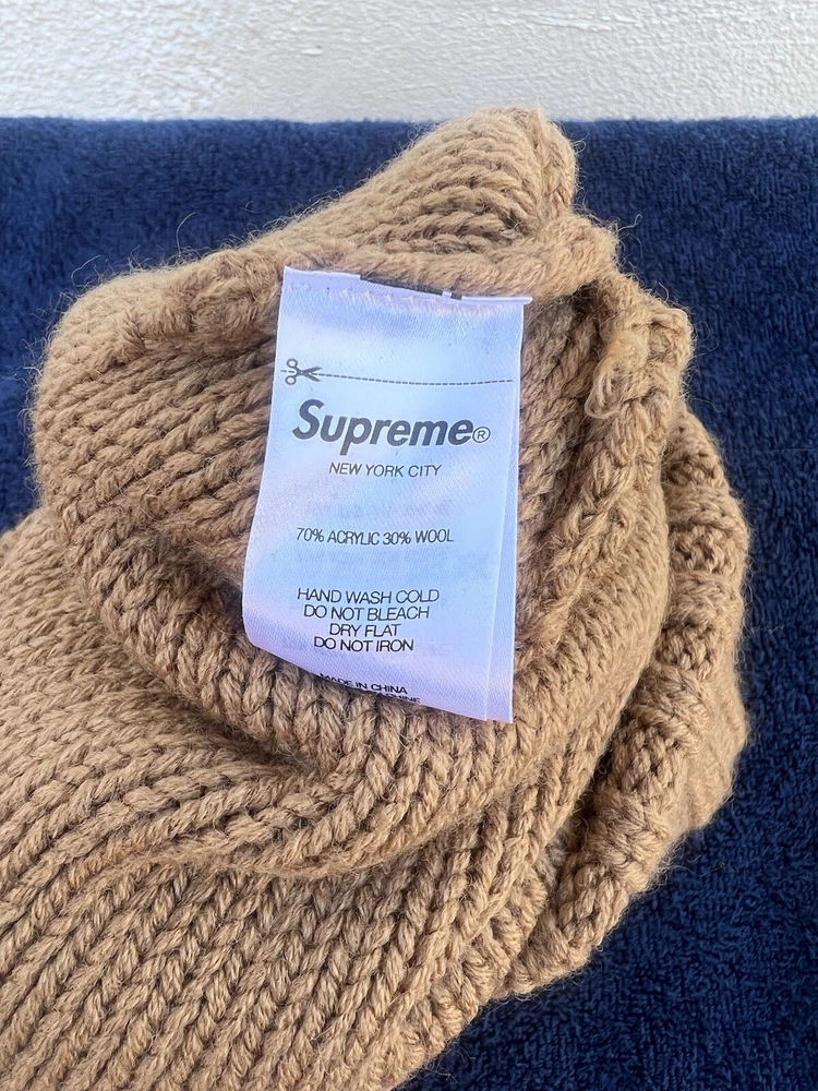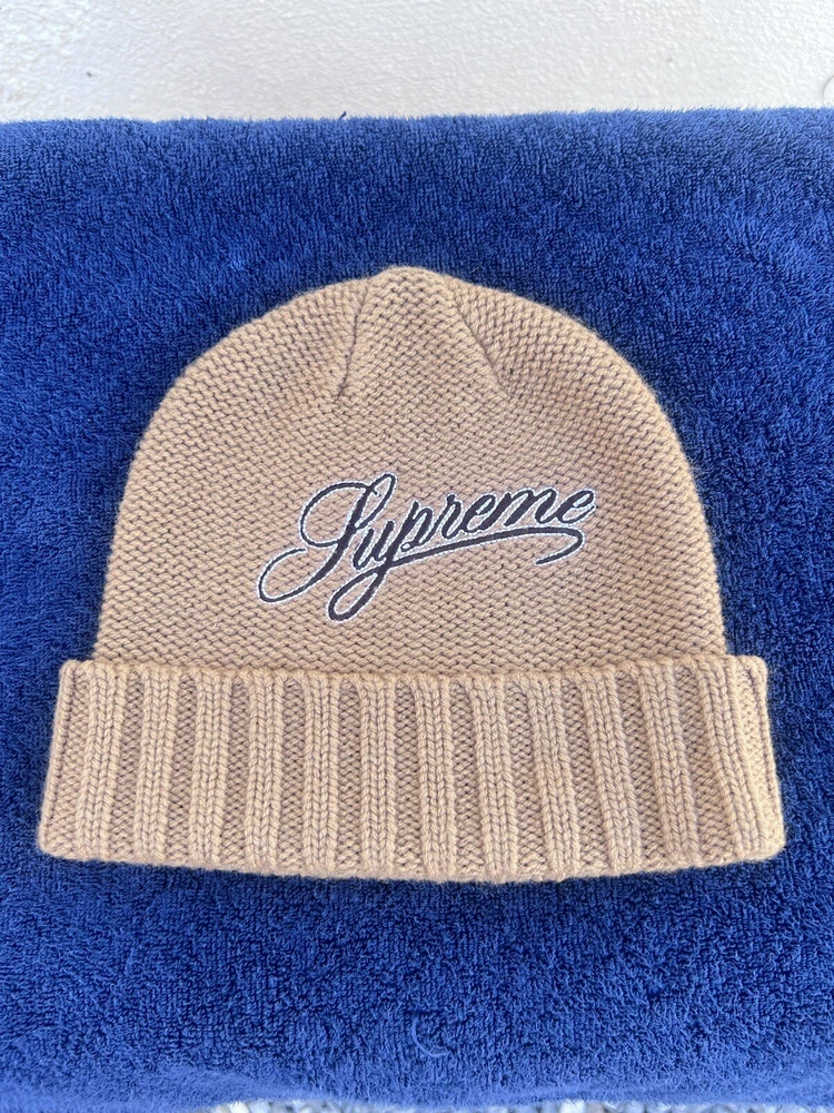 Supreme Script Logo Beige Beanie FW21
