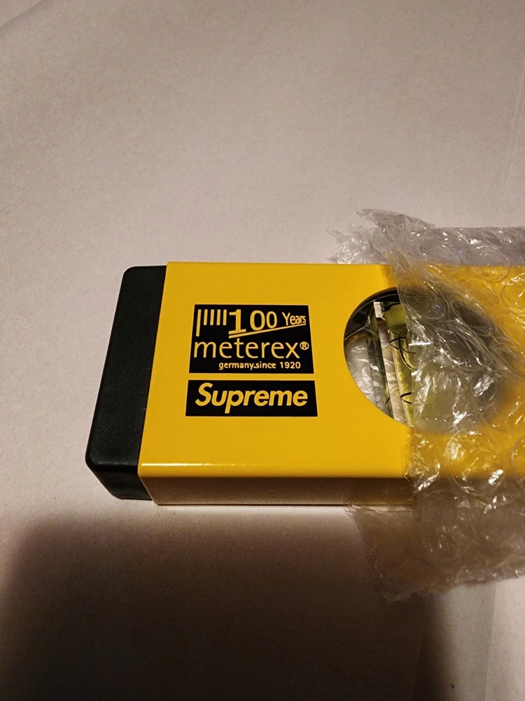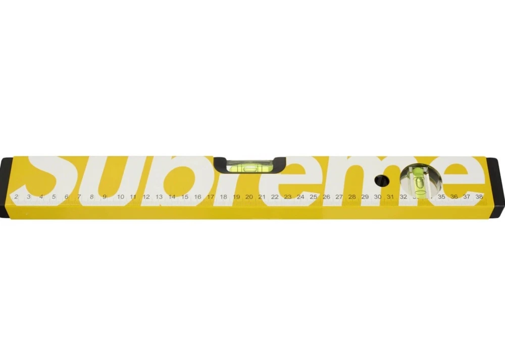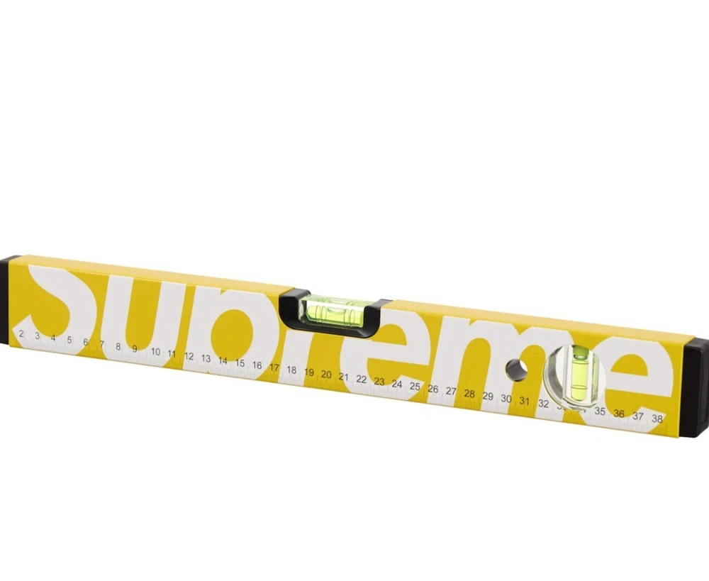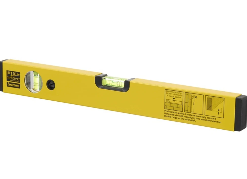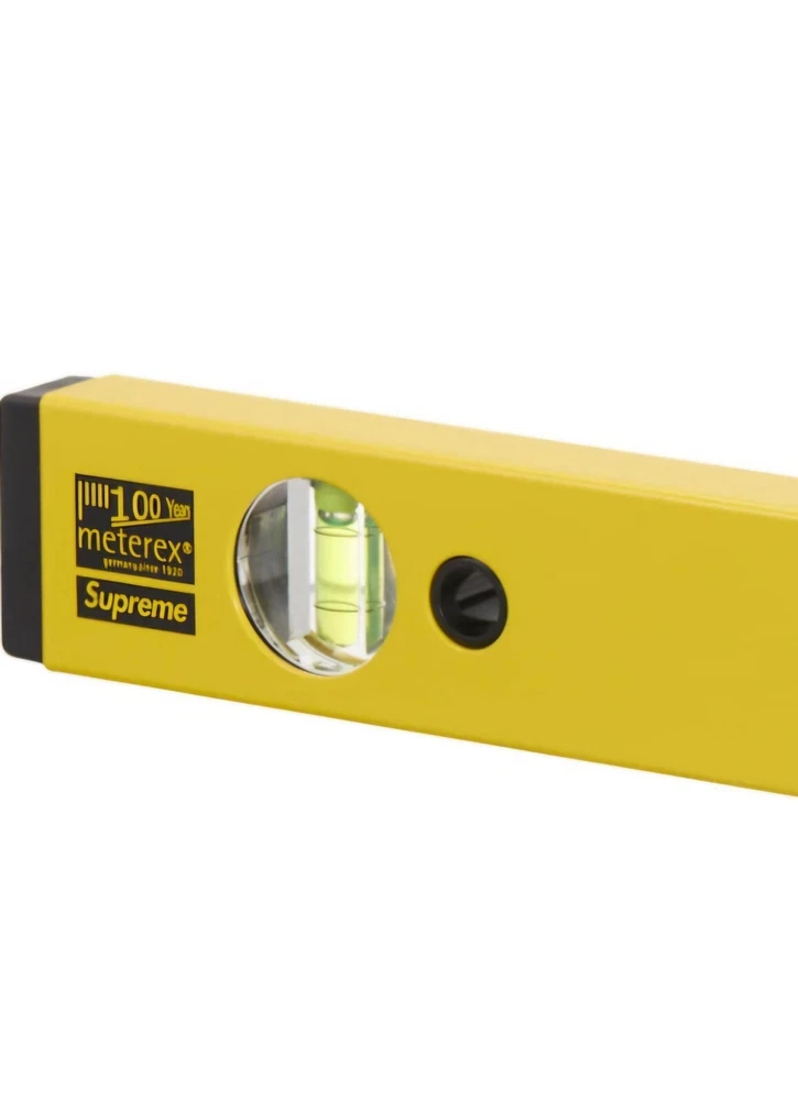 I habe in hand! Hmu with offers or questions!! It is 39cm - 15.75In .This Supreme Meterex Spirit Level in yellow is a rare find for any streetwear enthusiast. Crafted from 100% aluminum, this multifunctional accessory is perfect for those who want to add a touch of luxury to their daily routine. The logo accents and sleek design make it a must-have for any Supreme fan. This unisex level is perfect for both men and women who want to show off their love for designer and streetwear fashion. This spirit level is sure to make a statement. Don't miss out on the opportunity to add this Supreme Meterex Spirit Level to your collection.
