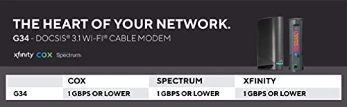 Return Policy Fast Delivery Trusted seller Surfboard G34 DOCSIS 3.1 Gigabit Cable Modem & AX3000 Wi-Fi 6 Router, Approved for Cox, Spectrum, Xfinity & Others Product Description DOCSIS 3.1 Modem features the latest technology offered by cable internet providers and is capable of combined download speeds up to 4 Gbps. Best for cable internet speed plans up to 1 Gbps. Experience better network performance with Wi-Fi 6. The G34 provides Wi-Fi speeds up to 3000 Mbps for a better gaming, streaming, or working experience. Approved for use with major U.S Cable Internet providers, including Cox, Spectrum, Xfinity and many others. Not compatible with AT&T, Verizon, CenturyLink or other DSL or Fiber internet providers. The G34 features four 1-Gigabit Ethernet ports for fast, reliable wired connections for devices like smart TVs, gaming consoles and more. Fast, Easy, Secure Setup with SURFboard Central App: Provides step-by-step instructions to set-up your network. Once complete, you can manage your network, including setting screen time parental controls. Shipping Returns Payment Shipping Shipping is FREE to all addresses other than APO/PO boxes in the lower 48 states. All our stock ships from US-based warehouses. Shipped via USPS or UPS (depending on location and package weight) Unless stated otherwise, all orders will ship within 24-72 hours of your payment being processed. Check our feedback to see the great reviews of FAST shipping we offer. Returns Seller does not accept returns Payment We currently accept payment via eBay managed payments only. Once payment is cleared, we will dispatch your shipment within 1-3 business days. Please refer to the "Shipping" tab for more information regarding shipping speed to your destination.