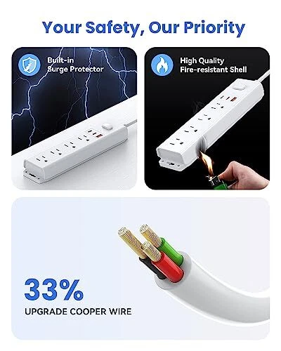 Menu 1. We require immediate payment. 2. We currently accept payment via eBay managed payments only. 3. Once payment is cleared, we will dispatch your shipment within 1-3 business days. Please refer to the "Shipping" tab for more information regarding shipping speed to your destination. Surge Protector Power Strip, 5ft Extension Cord with 4 Outlets,30W Fast Charging USB Ports, Flat Plug Wall Mount Power Strip, Desk USB Charging Station for for Home, Office Product description [7 in 1 Power Strip with USB] The power strip with 4 AC surge protector outlets and 3 usb ports(2x USB-C, 1xUSB-A),can power up 6 devices simultaneously.Compatible with your cellphone, laptop, tablet, earphone, or cameras without a variety of converters, keep your desktop organized, a must have accessories for colleague dorm room, home, office, bedroom, kitchen and etc. [30W Fast Charging USB Ports]With an additional 2 USB C and 1 USB A ports, the power strip allows for charging your devices at a maximum rate of 15/3A,Equipped with smart charging technology, it can automatically detect your devices, ensuring optimal charging efficiency. This makes it a perfect fit for charging a variety of devices, including your iPhone, iPad, tablet, and Bluetooth earphones [5ft Extension Cord with Flat Plug]The low-profile flat plug is designed to fit easily into tight spaces. The 5ft extension cord is constructed with pure copper, providing better current carrying capacity. This power cord is durable,high wear resistance, protects circuits from fire, impact or rust, prevents dents and scratches. [Easy Mount on Wall and Desk]This mountable power strip features a screw fixation design on both ends, allowing for secure installation in various applications. It is easy to mount on walls, desks, or furniture, keeping your desktop organized. The low profile design ensures stability on your desktop or nightstand without slipping off, while the flat extension cord makes it lighter and more convenient than ordinary power strips. [Multi Safety Protection, 24 Months Replacement]This power strip has surge protection,overload protection, short-circuit protection, over-current protection, short-circuit protection to help keep your devices safe. We provide 24 months replacement service,If you are not satisfied with the product, please contact us for a replacement within 24 months. PLEASE MESSAGE US IF YOU HAVE ANY OTHER QUESTIONS, AND MANY THANKS FOR READING ALL OF THIS. Copyright ©#. All Rights Reserved.