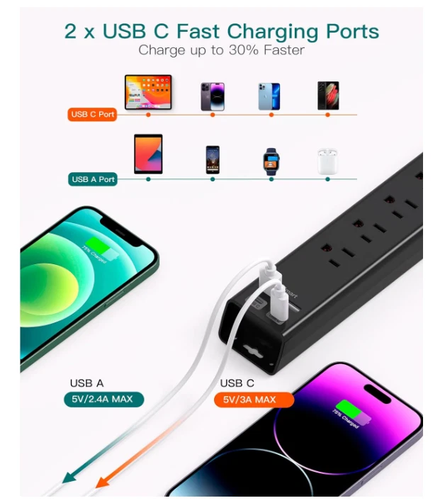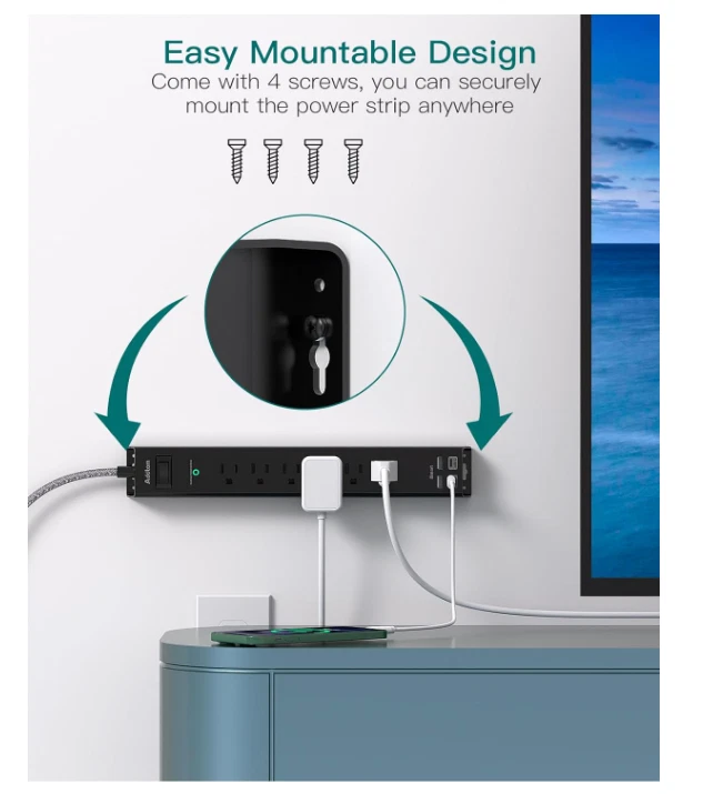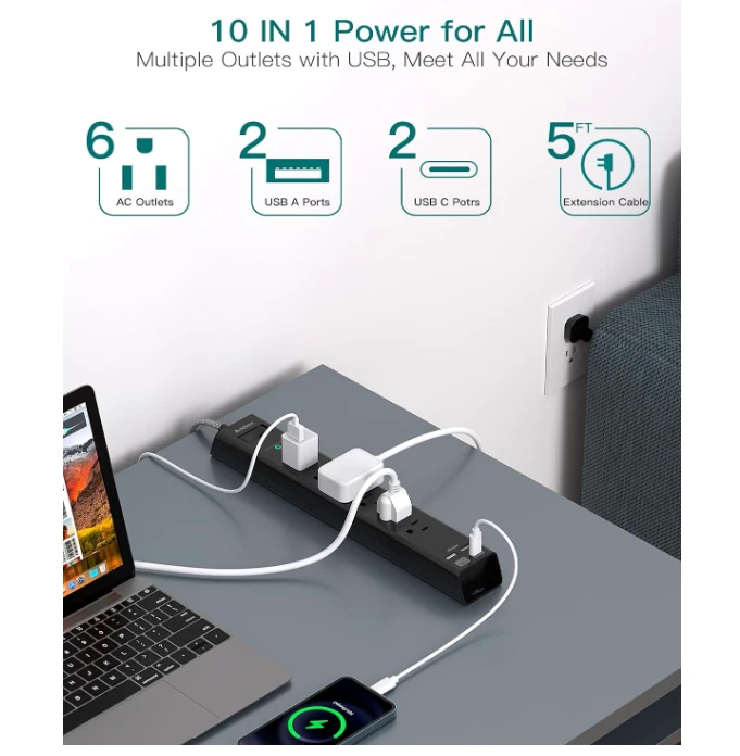 Free eBay listing template designed by dewiso.com Surge Protector Power Strip - 6 AC Outlets, 4 USB (2 USB-C), 5ft Flat Plug Product Introducing the ultimate solution for powering all your devices! Our Surge Protector Power Strip features 6 AC outlets and 4 USB ports (including 2 USB-C ) to keep your home or office organized and charged efficiently. Say goodbye to clutter and hello to convenience—charge your laptop, phone, tablet, and more, all in one place! With a sleek flat plug design, this power strip fits snugly behind furniture, maximizing your space while providing essential power protection. Shipping We take pride in offering fast and reliable delivery for your orders! We are committed to getting your products to you as quickly as possible. Generally, we would like to inform you that all orders will be delivered to you within 1-3 business days after processing. However, in some cases, delivery times may vary depending on the buyer's location. Especially in remote or rural areas, the expected delivery time may be extended. In such situations, we do our best to ensure that your order reaches you as quickly as possible. If there are any delays, we will be happy to contact you to explain the situation. Our goal is to enhance your satisfaction with our fast delivery times. We work diligently to ensure that your order arrives safely. Trust us and enjoy our speedy delivery! Contact Have questions? We're here to help! Feel free to reach out at any time, and we’ll respond quickly to ensure you have all the information you need. Why You Should Buy This Item: Versatile Charging : 6 AC outlets and 4 USB ports allow simultaneous charging of multiple devices. Smart Technology : Auto-detects your devices for optimized charging speeds. Safety First : Equipped with surge protection, overload protection, and a built-in circuit breaker for peace of mind. Features and Further Details Additional Features : Ultra-thin flat plug design saves space and prevents clutter. Easy wall-mounting options included for versatile installation. Details : This power strip is made with durable materials, ensuring long-lasting performance. Rated for 900 Joules of surge energy capacity to protect your devices. Package Includes : 1 Surge Protector Power Strip, 4 mounting screws for easy installation, and an instruction manual. LuxeFusion