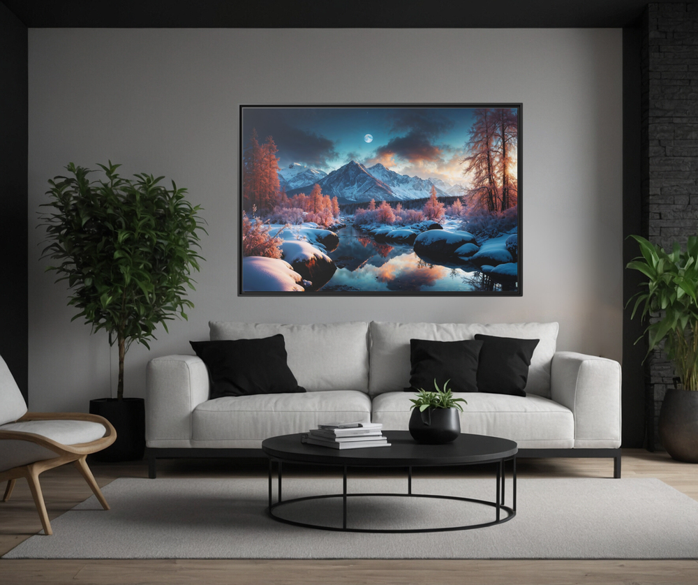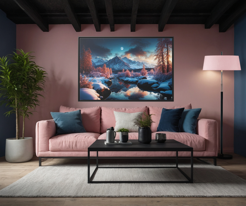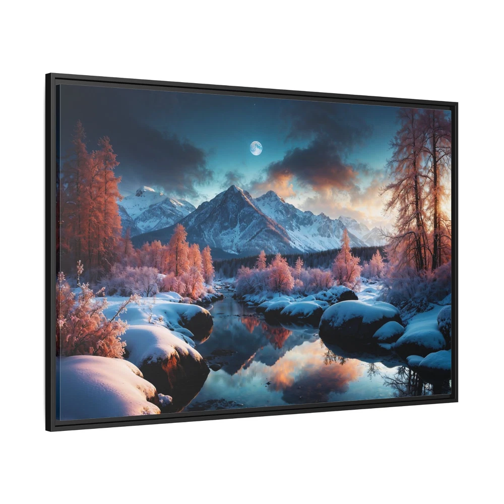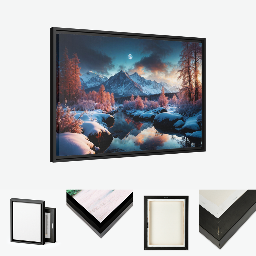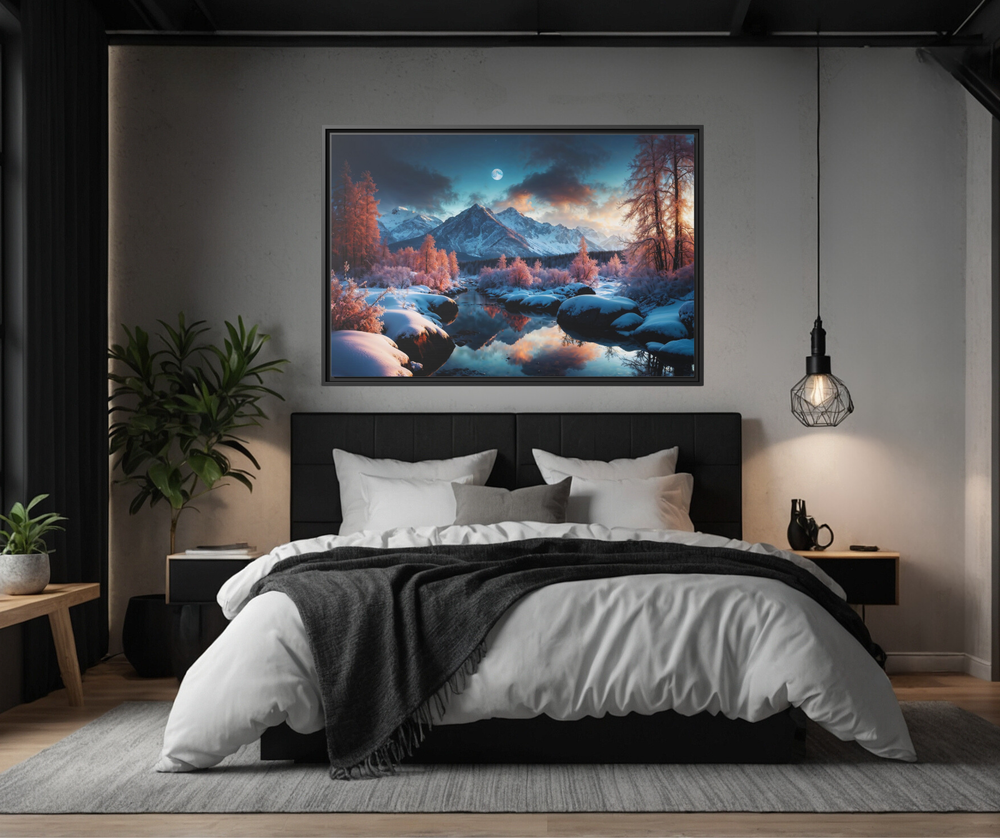 "Ethereal Winter Reverie" – Surreal Abstract Landscape Canvas Print Product Description: Step into a dreamlike world of tranquil beauty with "Ethereal Winter Reverie," an exquisite surrealistic abstract winter landscape by Hypnotik Creations . This mesmerizing piece blends soft pink and blue hues to create an otherworldly atmosphere, featuring snow-kissed mountain peaks, a serene reflective body of water, and a lush forest blanketed in winter’s embrace . The artwork’s unique color palette and ethereal composition evoke a sense of wonder, peace, and quiet contemplation , making it a breathtaking addition to any space. Expertly printed in HDR on museum-quality gallery wrapped canvas , this artwork is crafted using a premium cotton-polyester composite with a proprietary matte finish coating , ensuring vibrant, long-lasting colors and sharp, high-definition detail . Using UL-certified Greenguard Gold inks , which are non-toxic, non-hazardous, and non-flammable , this piece delivers exceptional image clarity while remaining environmentally friendly . The artwork is framed in a 1.25" solid pine wood frame with an elegant espresso finish , offering a sophisticated floating effect that enhances its modern appeal. The Forest Stewardship Council (FSC) certified wood ensures a sustainable and eco-conscious choice , perfect for those who appreciate both art and the environment. Designed for effortless display , this piece arrives ready to hang with pre-installed sawtooth hardware , making installation a breeze. Due to the precision-crafted production process , slight size variations of +/- 1/8" (3.2mm) may occur . To maintain its pristine condition, simply wipe the surface with a clean, damp cloth as needed. ✨ Key Features ✨ ✔ Dreamlike Winter Landscape – A surreal abstract scene featuring soft pink and blue hues, snow-capped mountains, lush winter forests, and a tranquil reflective lake . ✔ HDR Printing on Museum-Quality Canvas – Cotton-polyester composite with a proprietary matte finish ensures stunning vibrancy and crisp detail . ✔ Eco-Friendly, Non-Toxic Inks – Printed with UL-certified Greenguard Gold latex inks , safe for any space and environmentally responsible . ✔ Elegant Floating Frame in Espresso – 1.25" solid pine wood frame enhances the artwork with a modern, sleek aesthetic . ✔ Sustainably Sourced Materials – Forest Stewardship Council (FSC) certified wood frame promotes eco-conscious craftsmanship . ✔ Ready to Hang – Comes fully assembled with sawtooth hardware attached , allowing for hassle-free installation . ✔ Easy to Maintain – Simply wipe with a clean, damp cloth to keep your artwork looking fresh and vibrant . ✔ Precision-Crafted – Slight size variations of +/- 1/8" (3.2mm) may occur due to the production process. Let "Ethereal Winter Reverie" transport you to a peaceful, surreal winter landscape , filling your space with a sense of calm, beauty, and artistic sophistication . Perfect for any modern, minimalist, or dream-inspired interior , this stunning gallery-wrapped canvas is sure to captivate and inspire . 🌙❄️🎨 4o