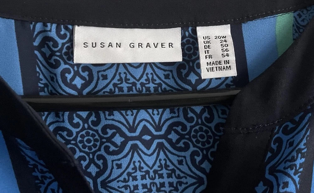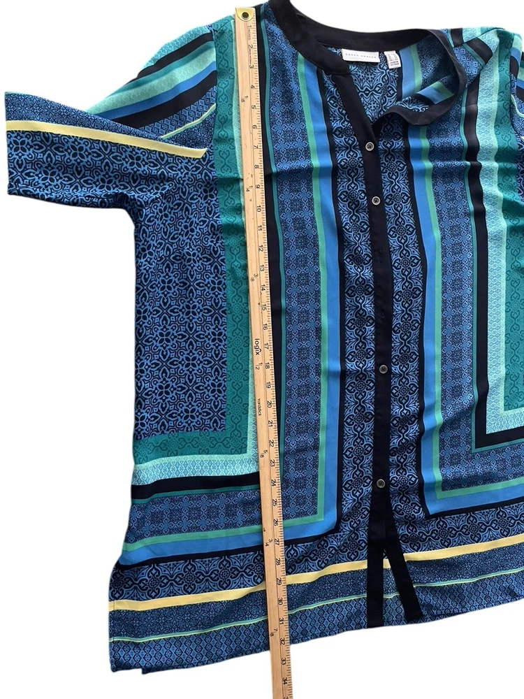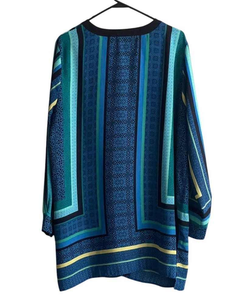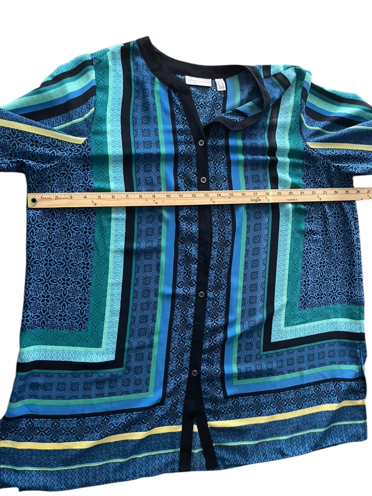 Susan Graver Women Tunic Top 20W Button Front Striped Blue Multicolor V-neck. Condition is Pre-owned. Shipped with USPS First Class.