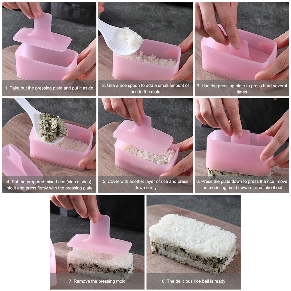 Sushi DIY Maker Mould Spam Musubi Mold Non-Stick Rectangular Plastic Press Tool Bullet Points: 【Durable And Sturdy】Utilizing raw materials of superior quality. The usage of Spam Musubi Mold is secure and has no smell. It is sturdy, resilient, difficult to break, and tough. 【Take It Anywhere】The Musubi Maker can be carried around the house, to school, or on a trip because it is portable and light enough to be held easily in the hand. It can be carried any place if you put it in your bag. 【Widely Used】Spam Musubi Maker is incredibly useful and well-suited for outdoor activities including school, party, barbecue, picnic, wedding, and camping. 【Simple Steps To Use】You can install the Musubi Mold in just a few simple procedures. Beginners can complete it freely without any prior work experience. 【Perfect Gift Choice】At Halloween, Christmas, Carnival, birthdays, and Father's Day, you can give Musubi Press kit to your families, friends, or other loved ones. Description: Spam Musubi Mold adopts concave and convex design (including lining and bottom) to ensure that rice does not stick to the mold and is easy to demould. The curved corners give sushi rice a better shape and appearance. After pressing and shaping, the sushi mold can be easily removed, which is more convenient to use. Specification: Product name: Spam Musubi Mold Material: food grade PP material Color: pink Size: Mold box size: about 4.13*2.36*1.97inch (10.5*6*5cm) Press plate size: about 4.06*1.97*1.97inch (10.3*5*5cm) Features: easy to use, do it yourself, can make multiple layers, clean and delicious Packing List: 1*Mold Box 1*Press Plate 1*Rice Spoon Note: Due to different lighting and screen settings, item colors may vary slightly from the pictures. Due to the difference in manual measurement, please allow a 1-2cm difference in size. 1.You can make a Credit payment via Paypal.Paypal will let you use MasterCard,Visa to pay. 2.Payment should be completed within 5 days after auction closed, or unpaid dispute will be filed for an closing auction.An unpaid case will be filled after 4 days. ● We strive for 100% customer satisfaction ! ● Positive Feedback is very important to us. ● We hope that you contact us immediately BEFORE you give us neutral or negative feedback, so that we can satisfactorily address your concerns. ● We promise to offer the lowest price and high quality produce. Dear buyers : ● Welcome to my store ! ● Your satisfaction is our top goal,we appreciate your patronizing. ● If you have any questions, please contact us before leave negative or neutral feedback, we will try our best to solve the issue to your satisfaction, thanks ! ● If you are satisfied with our service, please rate the details of the transaction (Detailed Seller Ratings) on eBay. ● Please always talk to us via ebay Message. ● We appreciate your business and look forward to growing our e-Bay sales with satisfied customers.