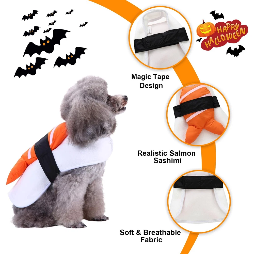 Adorable Pet Halloween Sushi Costume Festival Dress Clothing Daily Wearing Coat for Dogs and Cats. Turn Your Pet Into a Sushi with This Adorable Sushi Pet Costume. Product Feature: ✔ Made up of quality material which is durable and washable. ✔ Make your pooch wear sushi and he'll win the first prize of any Costume Party. ✔ This light-weighted latte makes your pet feel comfortable and proud. ✔ Exquisite workmanship ensure its good durability and comfortable feel for your pets. ✔ A quick and easy way to dress up your pet in a festive look. Product Size Details: S: Back length 24cm(9.45in) * chest 37cm(14.57in) * neck 24cm(9.45in) M: Back length 29cm(11.42in) * chest 43cm(16.93in) * neck 29cm(11.42in) L: Back length 34cm(13.39in) * chest 48cm(18.90in) * neck 34cm(13.39in) XL: Back length 40cm(15.75in) * chest 52cm(20.47in) * neck 40cm(15.75in) Warm tips: 1. The actual color may be slightly different because of the different display and illumination effects. 2. Due to manual measurement, please allow the 1-2cm error. 1 X Sushi clothes for dogs 【CHARMING AND BEAUTIFUL】 - Specially Designed for Halloween, lovely and interesting sushi pet costume design is perfect for dogs to make the attractive and different from other pets, and it can add the festival atmosphere. 【High QUALITY & COMFORTABLE】 - It adopts high-quality material with good breath-ability to make the pet feel comfortable when they wear. The cotton fabric is non-and friendly for skin, and the hat is harmless for dogs. 【EASY TO WEAR】- Designed with simplicity in mind, this costume is easy to slip on and off, turning you and your furry friends into delicious treat and easily preparing for the holiday. 【MULTIPLE OCCASIONS】 - Great for halloween, birthday parties or any event where you simply want to have fun. Please don't forget: your pet love halloween too! 【LET'S MEASURE】 - 𝐒𝐢𝐳𝐞 𝐒: Back length (9.45in) * chest (14.57in) * neck (9.45in). 𝐒𝐢𝐳𝐞 𝐌: Back length (11.42in) * chest (16.93in) * neck (11.42in). 𝐒𝐢𝐳𝐞 𝐋: Back length (13.39in) * chest (18.9in) * neck (13.39in). 𝐒𝐢𝐳𝐞 𝐗𝐋: Back length (15.75in) * chest (20.47in) * neck (15.75in).