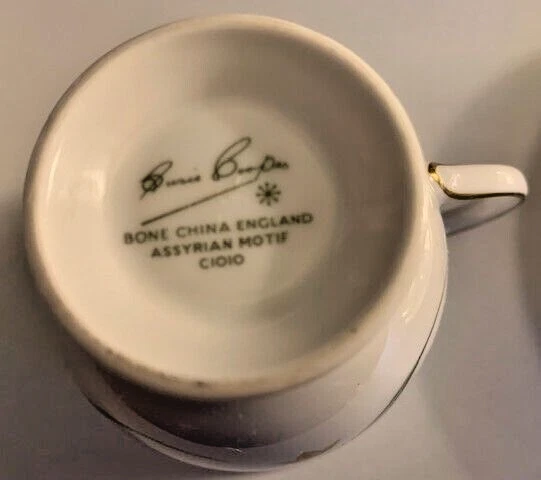Vintage (1960's) Susie Cooper Assyrian Motif Floral Tea Cup & Saucer Set C1010 - Bone China with gold gilt rims and handle - England . In excellent condition, it has no chips, cracks, crazing or fading. The cup measures 3.25” in diameter and is 3” tall. The saucer is 5.75” in diameter. T o date, we have left positive feedback for every single successful transaction since we started in 1999. Our main goal, though, is to get the items out ASAP into your hands. The time we spend on ensuring this, however, limits us into doing our Feedback only once or twice a month at which time we catch up on ALL of our feedback. So please be patient and do not e-mail us about leaving you feedback, you have our guarantee that it WILL eventually get done.