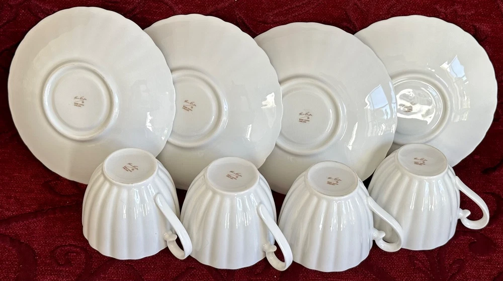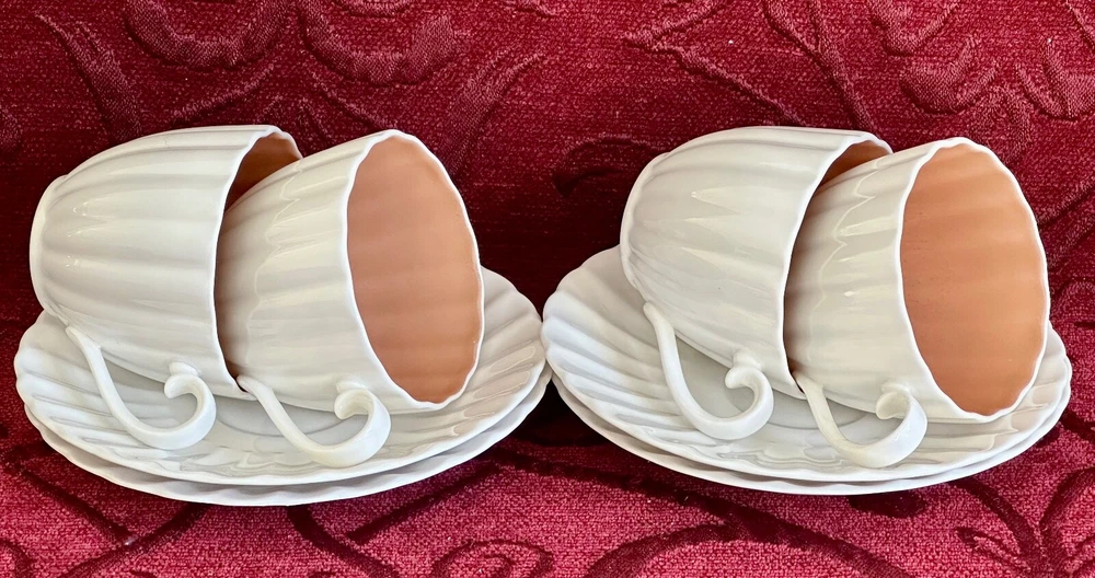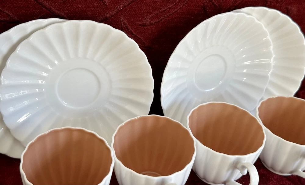 Susie Cooper Coffee Set Description Vintage C1950's 8 piece espresso coffee set designed by Susie Cooper for Wedgwood in their white and mushroom pink fluted/scalloped design. Made in England, the set comprises 4 x cups, 4 x saucers. All pieces are in excellent condition and the whole set presents beautifully with no chips or cracks with no obvious wear. Buy with confidence it is a gorgeous set in fine bone china and ready to use. The cups are espresso size and measure 6.5cms in diameter across the rim by 5.5cms high. The saucers measure 13cms in diameter across the rim. To see what else is available Click here to visit our store All sizes are approximate and p lease view the comprehensive photos as they do form part of the description. Payment Payment can be made by Paypal, bank deposit/transfer or cash on collection. Bank details are available when you go through checkout. Shipping All items are sent through Australia Post with tracking and will be posted within 2 business days of receiving payment. Always be assured that your purchases will be packed with the utmost care and attention and we are always happy to combine items.