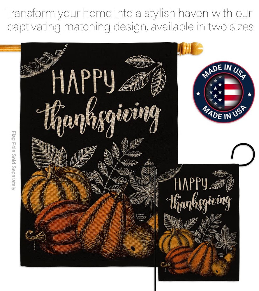 Thanksgiving Beautiful Mini Garden Flag have variety of Garden Flag for all occasions. Uniquely design for hanging indoor or outdoor use. We are committed to offering you exceptional values. Our customers enjoy displaying our Garden Flag for longer periods. Specification: Theme: Thanksgiving Size: Garden Flag 13" x 18.5" Print: Double-Sided Readable: Readable Both Sides Material: Weather Resistant Double Burlap Stitching: Double Stitched Display: Vertical Hang Type: Sleeve Artist: © Brad Whitewood Special Features: Origin: Made In USA Package Include: 1 pc x Garden Flag 13" x 18.5" Package Decorative Flags For more than a decade, we’ve been dedicated to manufacturing flags with no comparison in quality and beautiful designs. Our flags are made with our Guard material that is soft to the touch and designs can be read correctly on the flag. A feature that our customers will love. We are committed to using eco-friendly inks that won’t leave a foot print in our environment. MPN: OC-TG-G-192258-IP-DB-D-US20-OC 92258 G92258 PROUDLY Made In USA - Package And Product Designed In California PURCHASE WITH CONFIDENCE - From 's US Authorized Resellers MADE OF DURABLE - 100% Thick Double Burlap Fabric construction helps resist the wear and tear from frequent use TEXT READABLE BOTH SIDES - Garden Flag Double-Sided Print DURABLE FLAG - Double stitching panels on multiple rows and high quality Sleeve to provide lasting strength VIBRANT COLORS - With UV-Resistant Maintains Its Colors All Season Long FEATURES - Sleeve Hanger fits standard Banner/Flagpole, Bracket, Arbors or stand, SOLD Separately
