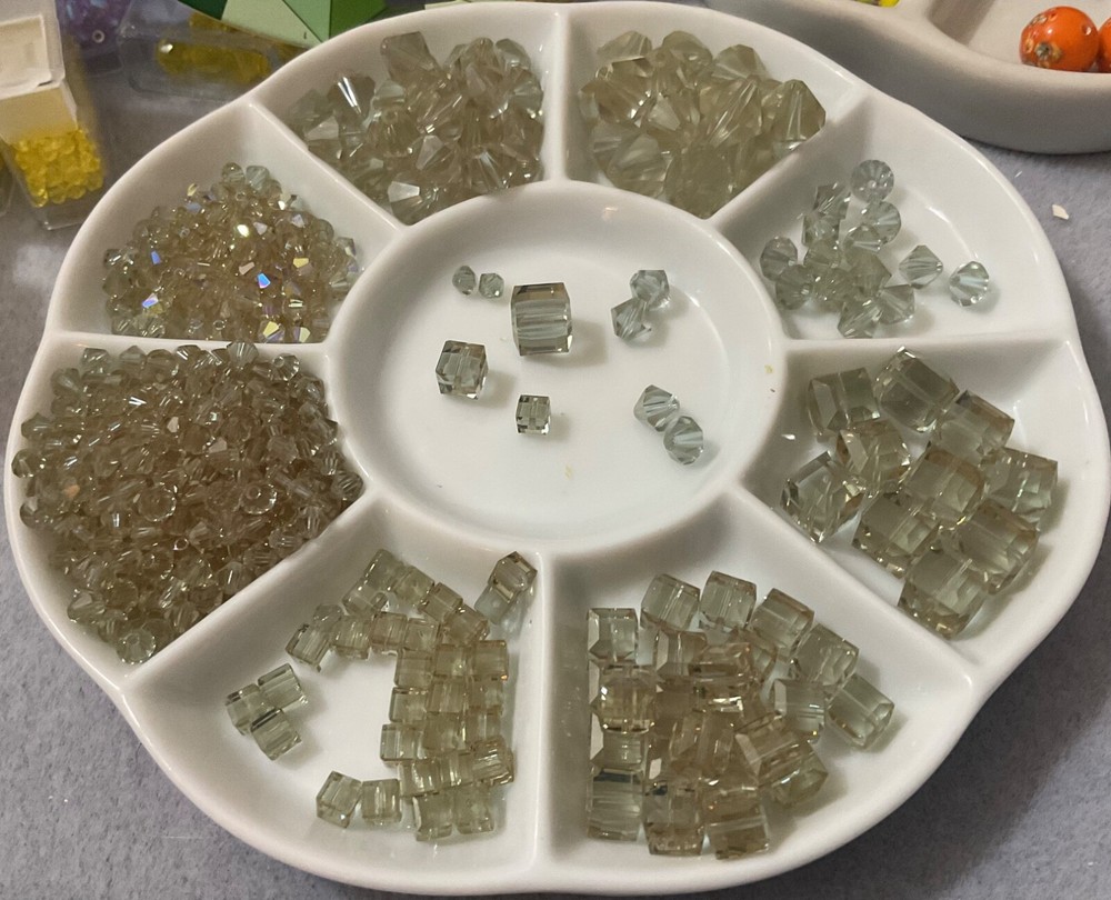 Vintage Swarovski Bead Lots inspire your unique creations to stand out while offering the air of exclusivity your Bead Art Jewelry Designs desire. Swarovski Crystal 5301 Bicones 5601 Cube Bead LOT CANTELOUPE / AB Canteloupe 4mm 5601 Cube Canteloupe, 6mm 5601 Cube Canteloupe, 8mm 5601 Cube Canteloupe, 4mm 5301 Canteloupe, 4mm 5301 AB Canteloupe, 5mm 5301 Canteloupe, 8mm 5301 Canteloupe, 10mm 5301 Canteloupe Additionally, this bead lot comes in Various sizes of Flip-Top Tube bead storage containers. My Swarovski Crystal & Czech Glass Bead Lot Collections offer significant savings, featuring various beads and crystal sizes in one bead lot, with postage savings alone - as postage continues its meteoric rise - savings that you can put towards ordering the best in quality beads and beading supplies for your Bead Art Jewelry Designs. Bead Lot includes what's listed/pictured and Flip Top Tube packaging: 4mm 5601 Cube Canteloupe 6mm 5601 Cube Canteloupe 8mm 5601 Cube Canteloupe 4mm 5301 Canteloupe 4mm 5301 AB Canteloupe 5mm 5301 Canteloupe 8mm 5301 Canteloupe 10mm 5301 Canteloupe All of my Swarovski listings are Vintage or Circa (manufactured before or around) 1998 - 2003.. As most jewelry designers, bead artists, and crafters know, Swarovski no longer just sells to smaller, unauthorized, contract-bound resellers. With all that being said, and although there are others with limited offerings of Swarovski Crystal Beads, Bicones & Pendants, we all know that, unless an authorized reseller, what is being offered/listed is it. NOTE : Even authorized resellers will not have many of the colors, sizes, and finishes as the latest Swarovski Crystal Designs have changed considerably. There are some amazing Crystals bead manufactures which my wholesaler and certified Swarovski dealer highly recommend; these brands are more than comparable replacements for anything Swarovski.