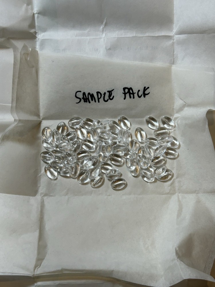 ARTICLE # - 3219/4 15x10mm UNOPENED PACKS OF 72 Clear crystal glass beads that resemble coffee beans. Would look gorgeous sewn on a solid material for a raindrop effect. I have A LOT of these. Feel free to message me if you want a discount for a bulk purchase. Please refer to photos for measurements. These will be sold as unopened packs. The sample pack was opened just to show the product.