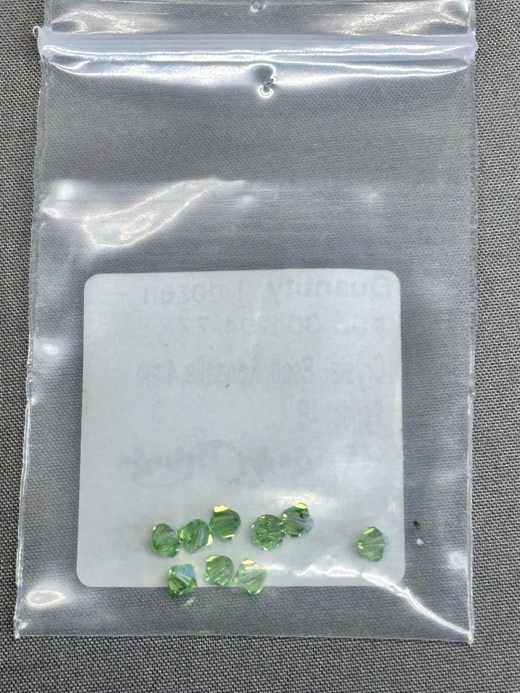Swarovski Crystal Bead Lot Green Emerald Peridot Bicone Round Rondelle Mixed This mixed lot includes authentic Swarovski crystal beads in green and emerald tone colorways. All pieces are genuine Swarovski Elements made in Austria and are sold together as one assorted lot. •Brand: Swarovski •Material: Crystal •Colors: Emerald, peridot, fern green, dark moss green, erinite •Styles: Bicone, round, rondelle, puff round, sew on margarita, briolette •Sizes: Approximately 4mm and 6mm •Hole sizes: Vary by bead style, see labels and photos •Condition: New unused beads from original labeled packaging •Origin: Made in Austria and USA for Swarovski Elements •Quantity: Mixed lot as shown, sold together These high quality Swarovski crystals are ideal for jewelry making, beadwork, repairs, or adding to an existing crystal bead collection. Please review all photos carefully to confirm styles, colors, and quantities included. Ships securely.