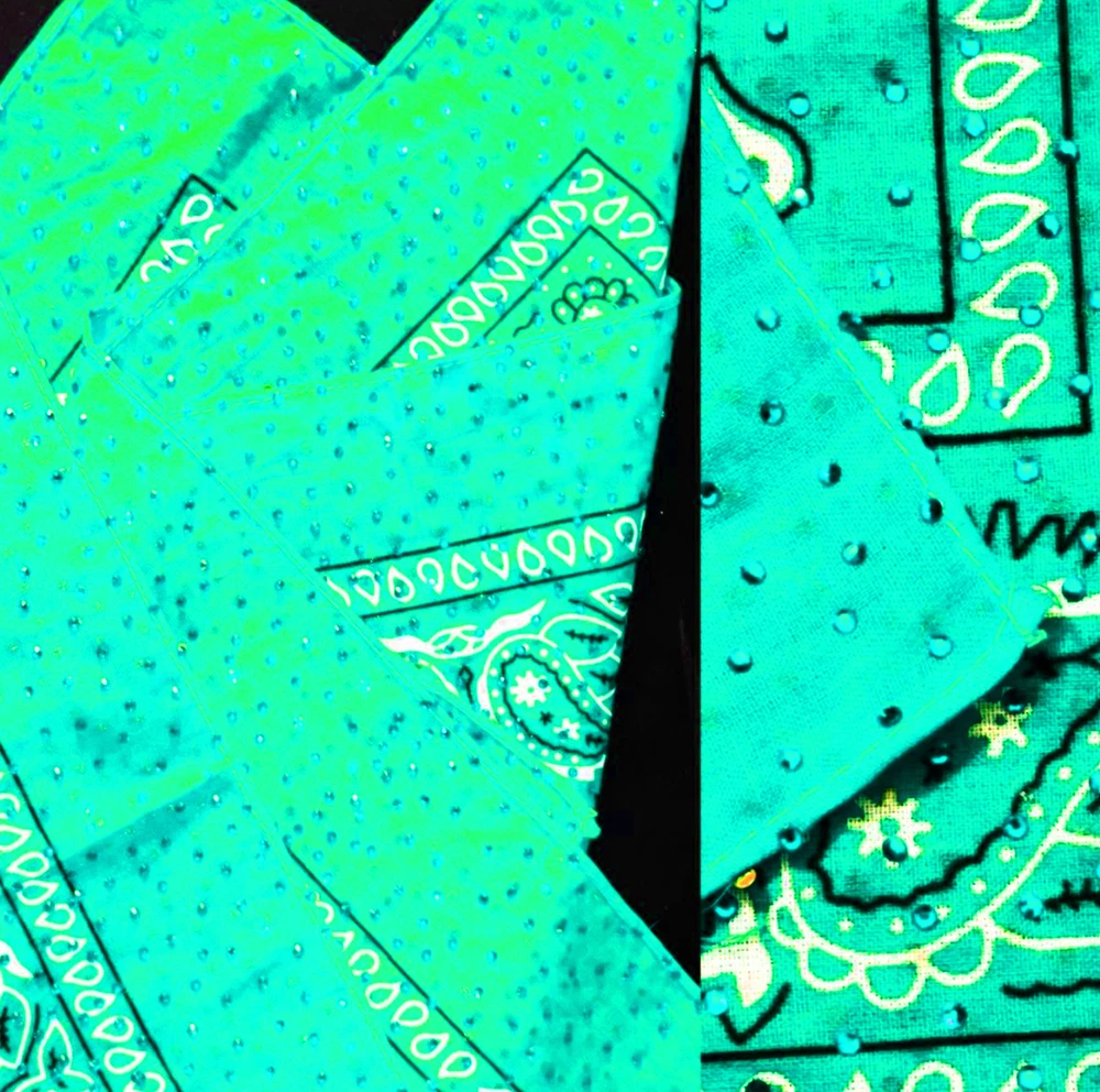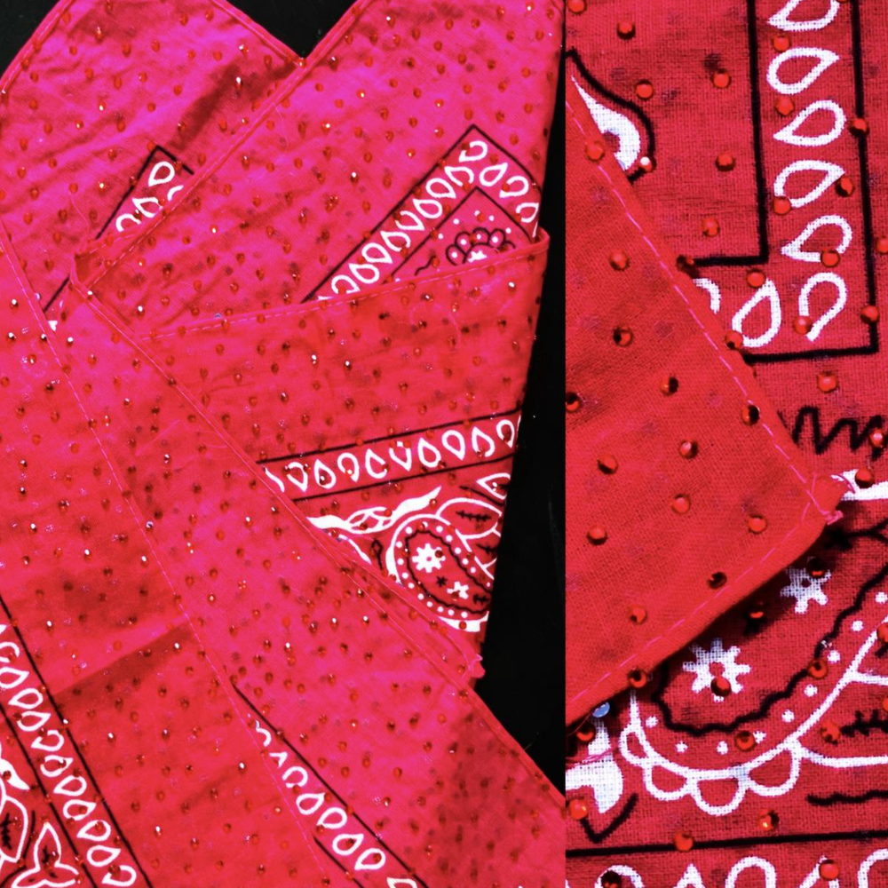 Introducing the exquisite Swarovski Drenched Bandanas, meticulously crafted to order just for you. Choose from an array of vibrant hues or charming prints, and if you don't see your desired color at checkout, simply opt for 'CUSTOM COLOR' and inform me of your preference. These luxurious, 100% cotton accessories are adorned with approximately 3,000 sparkling Swarovski crystals on both sides, creating a dazzling spectacle of opulence. Whether you wish to add a touch of glamour to your everyday attire or dazzle on stage before billions, these unisex bandanas are as versatile as they are enchanting. Suitable for both humans and pets, they serve as a whimsical fashion statement that transcends the ordinary. Each piece is a handcrafted masterpiece, with every crystal meticulously applied by skilled artisans. These bandanas are not merely accessories; they are wearable art that encapsulates the essence of the cosmos in a breathtaking display of brilliance. Ideal for any occasion, from a casual stroll to a glamorous evening affair, they are the epitome of magical allure and sophistication. Indulge in the luxury of being enveloped by a universe of sparkle with these exquisite, handcrafted pieces, tailored to your unique taste.
