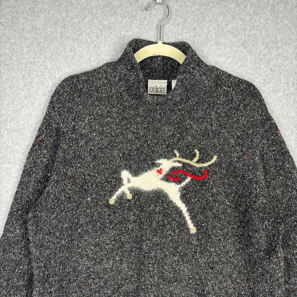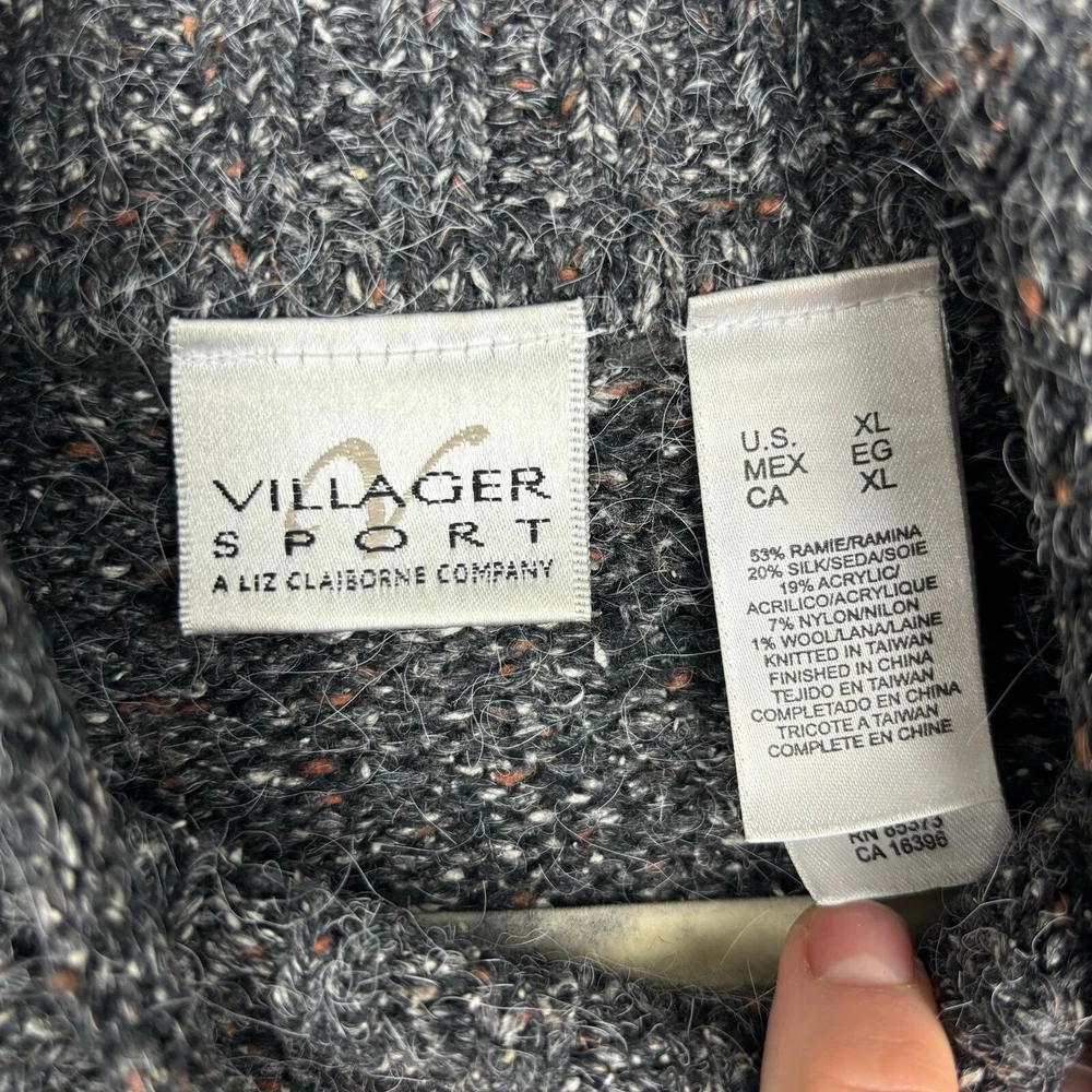 Villager Sport Liz Claiborne Sweater Womens XL Ramie Silk Wool Reindeer Holiday Christmas Granny Fuzzy Furry Charcoal Gray Speckled Flecked Mock Sleeve Good Vintage condition: material is naturally fuzzy and there is pilling at cuff/hem line. No visible stains or marks. SKU 5586 **Please see all pictures for full item condition and details** - Ships Same/Next Day, Professional Seller, Offers Welcome, Like or watch for price drops - Item in photos is exact item you will receive - I list new items daily, be sure to browse my store/closet for more items - Bundle pricing and combined shipping available for additional savings - Feel free to send a message