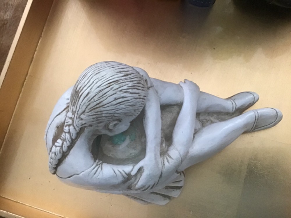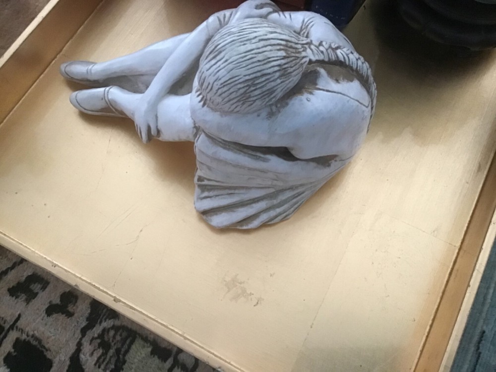 This exquisite sculpture of a sleeping ballerina is a true masterpiece from Art Collectables Inc. Crafted from high-quality clay and porcelain, it is a perfect addition to any collection of decorative collectibles. Its intricate details and lifelike features make it a great conversation starter for all occasions. Whether you are a collector or just looking for a unique piece of decor, this sculpture is sure to impress. 9”x 6”