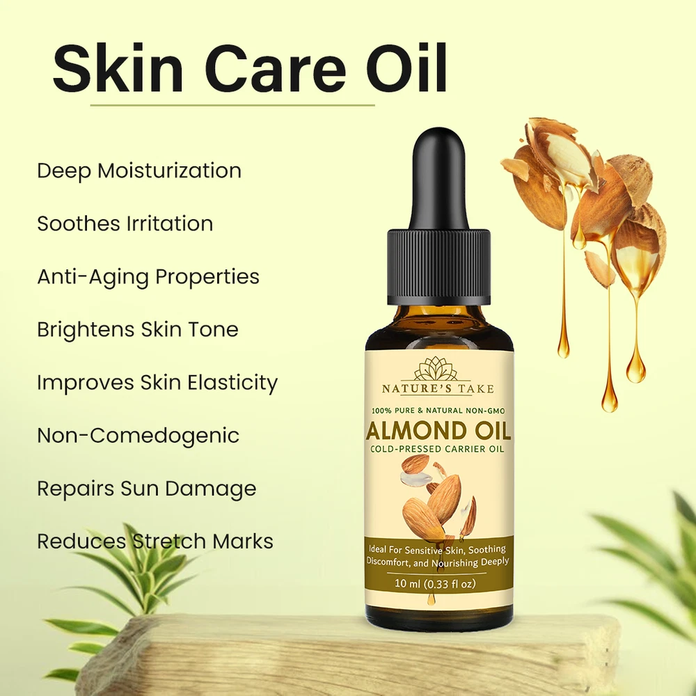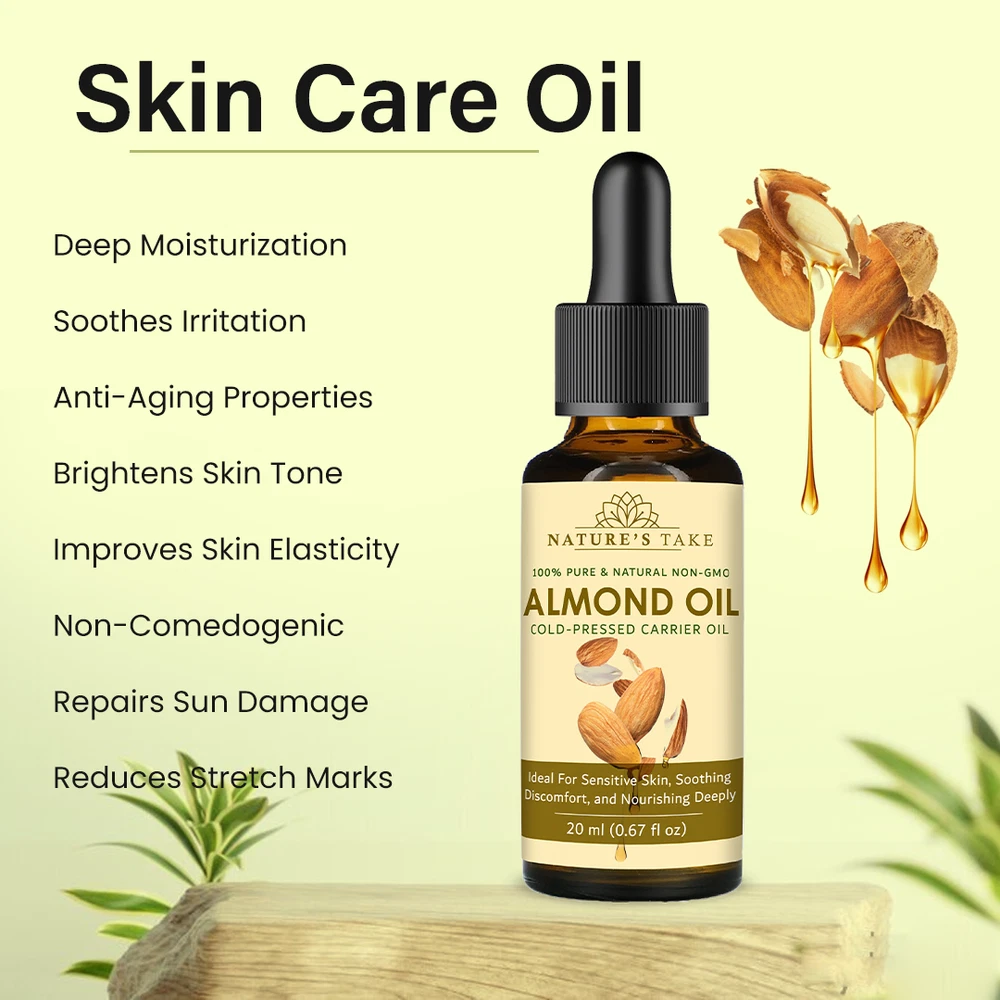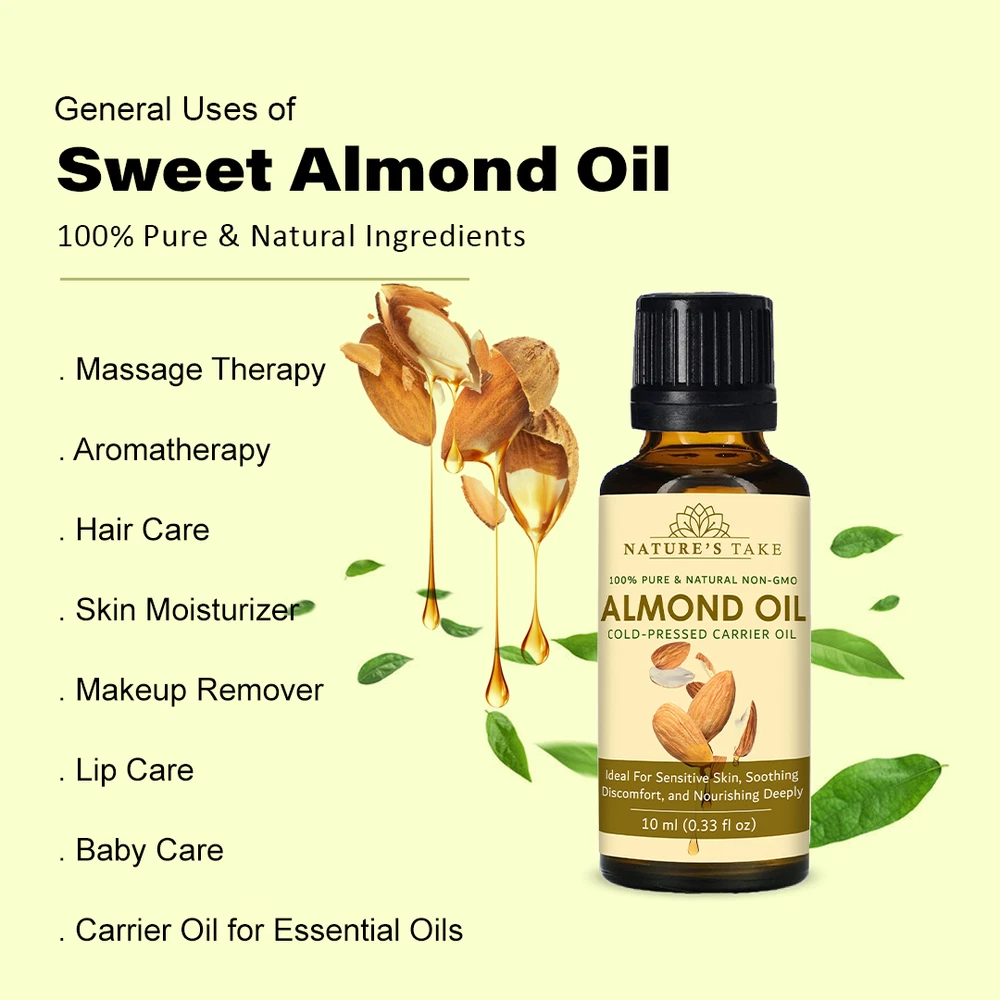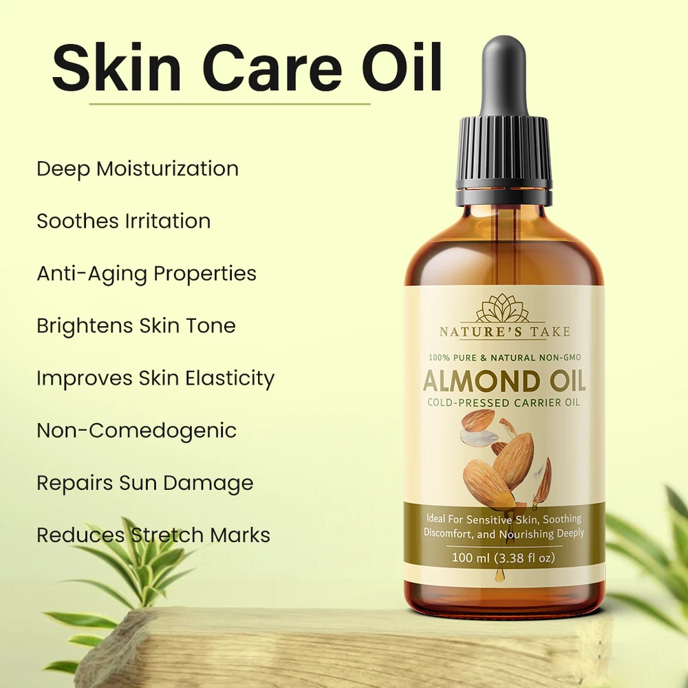 Natural Almond Carrier Oil | Cold-Pressed | Organic | eBay UK Organic Almond Carrier Oil Cold-pressed from premium almonds for natural general skincare and haircare applications. Organic Certified Vegan Friendly Chemical Free Cold Extracted Non-GMO Pure Plant-Based General Characteristics Careful Cold Processing The oil is extracted through a method that avoids high temperatures, which is important for preserving the inherent qualities and natural structure of the almond oil. This careful processing helps to retain the components that make it a sought-after carrier oil. Subtle and Light Feel Almond carrier oil is known for its delicate and non-overpowering texture. When applied to the skin, it tends to be absorbed relatively quickly without leaving a significant greasy or heavy sensation, making it a comfortable option for various uses. Naturally Occurring Components This oil naturally contains certain components, including a form of vitamin E and various fatty acids. These are inherent to the almond from which the oil is derived and contribute to the overall characteristics of the carrier oil. Production with Environmental Awareness The sourcing and production of this almond carrier oil are carried out with attention to ecological practices, aiming to minimize any adverse effects on the environment. This reflects a commitment to responsible and sustainable methods. General Benefits & Common Applications General Skin Conditioning Almond carrier oil is often used to help the skin feel softer and more supple with regular application. Its properties can contribute to the overall feel and appearance of the skin's surface. General Hair Nourishment When applied to hair, almond carrier oil can contribute to the general health and feel of the hair strands and the scalp. It is sometimes used as a component in hair care routines. Foundation for Aromatherapy As a carrier oil, almond oil serves as a suitable base for diluting essential oils, allowing for their safe application in aromatherapy practices. It helps to disperse the essential oils over a larger area. Common Massage Medium The texture of almond carrier oil makes it a common choice for massage, providing a smooth surface that allows for ease of movement and general skin conditioning during the massage process. Ingredient in DIY Preparations Almond carrier oil is frequently incorporated into homemade personal care recipes, such as lotions, balms, and other skin or hair-related preparations, due to its general compatibility with other ingredients. Maintained Freshness Over Time When stored under appropriate conditions, this almond carrier oil is expected to maintain its general quality for a considerable period, making it a practical choice for ongoing use. General Usage Suggestions For General Facial Care A small quantity can be gently applied to the face as part of a general skincare routine. For General Hair Care The oil can be applied to the hair and scalp as a conditioning step in a hair care regimen. For Diluting Aromatherapy Oils Almond oil can be used to dilute essential oils to the desired concentration for general aromatherapy use. General Safety Information For external use only. Keep away from children. Avoid direct contact with eyes. Discontinue use if any general skin response occurs. Store in a cool, dark place. General Skin Patch Advice: It is always a good practice to test on a small skin area first. General Inquiries Is this almond oil generally suitable for various skin types? Almond oil is often considered to be generally compatible with many skin types. Is delivery generally available across the UK? Yes, delivery services are typically available throughout the United Kingdom, including options for free shipping. What is the general policy on returns? Generally, unopened products can be considered for return within a specified period. What are the general storage recommendations for this oil? It is generally advised to store the oil in a cool environment, away from direct light sources. Explore Natural Applications Discover the general uses of our premium almond carrier oil with convenient UK delivery options. Explore Options