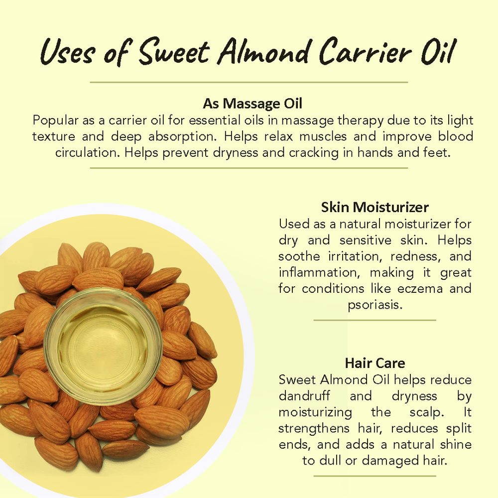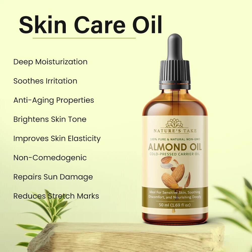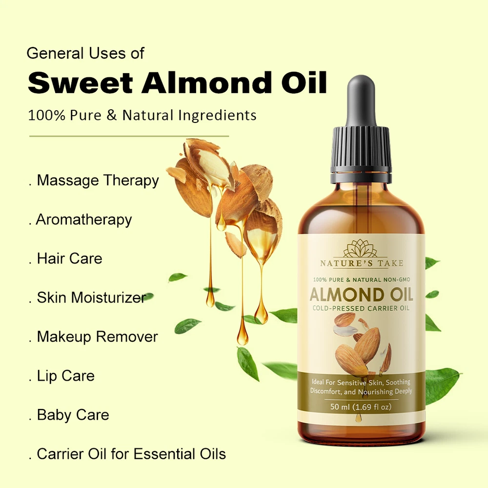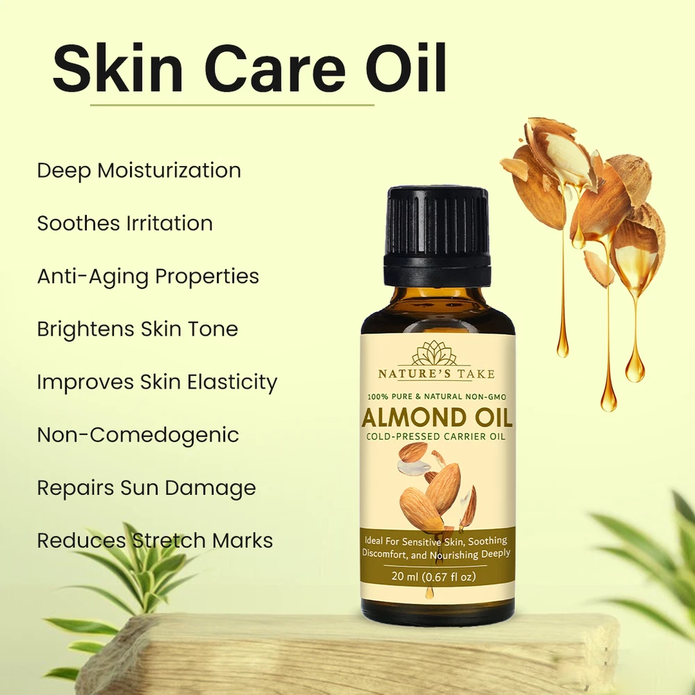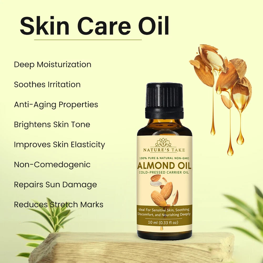Natural Almond Carrier Oil | Cold-Pressed | Organic | eBay UK Organic Almond Carrier Oil Cold-pressed from premium almonds for natural general skincare and haircare applications. Organic Certified Vegan Friendly Chemical Free Cold Extracted Non-GMO Pure Plant-Based General Characteristics Careful Cold Processing The oil is extracted through a method that avoids high temperatures, which is important for preserving the inherent qualities and natural structure of the almond oil. This careful processing helps to retain the components that make it a sought-after carrier oil. Subtle and Light Feel Almond carrier oil is known for its delicate and non-overpowering texture. When applied to the skin, it tends to be absorbed relatively quickly without leaving a significant greasy or heavy sensation, making it a comfortable option for various uses. Naturally Occurring Components This oil naturally contains certain components, including a form of vitamin E and various fatty acids. These are inherent to the almond from which the oil is derived and contribute to the overall characteristics of the carrier oil. Production with Environmental Awareness The sourcing and production of this almond carrier oil are carried out with attention to ecological practices, aiming to minimize any adverse effects on the environment. This reflects a commitment to responsible and sustainable methods. General Benefits & Common Applications General Skin Conditioning Almond carrier oil is often used to help the skin feel softer and more supple with regular application. Its properties can contribute to the overall feel and appearance of the skin's surface. General Hair Nourishment When applied to hair, almond carrier oil can contribute to the general health and feel of the hair strands and the scalp. It is sometimes used as a component in hair care routines. Foundation for Aromatherapy As a carrier oil, almond oil serves as a suitable base for diluting essential oils, allowing for their safe application in aromatherapy practices. It helps to disperse the essential oils over a larger area. Common Massage Medium The texture of almond carrier oil makes it a common choice for massage, providing a smooth surface that allows for ease of movement and general skin conditioning during the massage process. Ingredient in DIY Preparations Almond carrier oil is frequently incorporated into homemade personal care recipes, such as lotions, balms, and other skin or hair-related preparations, due to its general compatibility with other ingredients. Maintained Freshness Over Time When stored under appropriate conditions, this almond carrier oil is expected to maintain its general quality for a considerable period, making it a practical choice for ongoing use. General Usage Suggestions For General Facial Care A small quantity can be gently applied to the face as part of a general skincare routine. For General Hair Care The oil can be applied to the hair and scalp as a conditioning step in a hair care regimen. For Diluting Aromatherapy Oils Almond oil can be used to dilute essential oils to the desired concentration for general aromatherapy use. General Safety Information For external use only. Keep away from children. Avoid direct contact with eyes. Discontinue use if any general skin response occurs. Store in a cool, dark place. General Skin Patch Advice: It is always a good practice to test on a small skin area first. General Inquiries Is this almond oil generally suitable for various skin types? Almond oil is often considered to be generally compatible with many skin types. Is delivery generally available across the UK? Yes, delivery services are typically available throughout the United Kingdom, including options for free shipping. What is the general policy on returns? Generally, unopened products can be considered for return within a specified period. What are the general storage recommendations for this oil? It is generally advised to store the oil in a cool environment, away from direct light sources. Explore Natural Applications Discover the general uses of our premium almond carrier oil with convenient UK delivery options. Explore Options