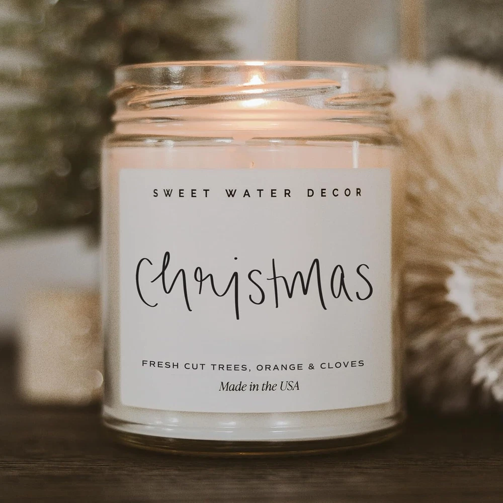 Sweet Water Decor Christmas Scented Candle - Cinnamon, Trees, Orange, and Clove Scented Winter Candle - Christmas Candles and Decor for Home - 9oz. Clear Jar Soy Candle, Made in the USA Item Description SMELLS LIKE - Let seasonal notes of apple cider, cinnamon, fresh cut Christmas trees, cookies, orange peels, and cloves fill your home this holiday season. This Christmas candle will remind you of your favorite holiday memories while you make new ones. All Christmas scents blend together to make the ultimate Christmas scented candle. CANDLE INFO - 9oz Clear Candle Jar with Gold Lid | Jar Size: 2.5 x 2.5 x 3.5" | 204g Net Weight | 40+ Hour Burn Time CANDLE CARE - Trim your wick to 1/4" before candle is lit each time to prevent soot. Burn candle so wax pool reaches the jar edge each time to prevent wax tunneling. Burn candle no more than 4 hours at a time. Do not burn candle with less than a 1/2" of wax remaining. Keep candle away from fans, open windows, hot surfaces, children, pets. Never leave a burning candle unattended PERFECT GIFT - If you love this winter candle, share the love and give the perfect gift for mom, sister, co-worker, friend and everyone in between. If you need a Christmas gift, birthday gift or holiday hostess gift, look no further. This holiday scented candle makes a great stocking stuffer or holiday office party gift, too! STYLISH - Our soy Christmas candles are not only functional, but stylish! They can blend in with any home decor style from rustic, to modern, to farmhouse. They are the perfect home accessory that happen to be some of the best smelling scented candles! › See more product details *Safe & Sustainable Our clean-burning US-grown soy based wax blend is free from gluten, lead, toxins & phthalates. *Made in the USA Our handmade candles (over 2 million sold) are blended & poured by our team in Pittsburgh, PA. *Crafted with Care From unique premium fragrance oils to giftable vessel options, no detail goes overlooked. *Perfect Gift From quote candles to motivational mugs, pens, journals, & more, our products make the perfect gift. *Light To Your Life & Home Each product is designed to bring motivation and light into your life and home. We are your one-stop destination for an extensive selection of encouraging and memorable products. From cozy candles that create the perfect ambiance to stylish mugs that make your morning coffee extra special and even reed diffusers that bring tranquility to your space—our range of high-quality products has something for every moment in your life. Our candles are crafted with premium ingredients and fragrances, ensuring you peace of mind while enhancing the ambiance of your space. Perfect for any setting, you can display them in your kitchen, bathroom, on your dresser, or in your office for enduring, delightful scents. Our clean-burning US-grown soy based wax blend is free from gluten, lead, toxins & phthalates. Our handmade candles (over 2 million sold) are blended & poured by our team in Pittsburgh, PA. From unique premium fragrance oils to giftable vessel options, no detail goes overlooked. From quote candles to motivational mugs, pens, journals, & more, our products make the perfect gift. Each product is designed to bring motivation and light into your life and home. Styling trays complete the look when pairing our candles, care kits, matches, and more. With a variety of styles, we have a perfect match to pair with our candles. Proper candle care is essential to the longevity of every candle. We strive to be your ultimate destination for exquisite gifts and versatile home decor that enhance life's special moments. At Sweet Water Decor, we embrace the art of beautifully crafted items, ensuring every occasion becomes unforgettable. Whether you're in search of the perfect gift or simply looking to elevate your living space, we have something special for you. Our Story: Sweet Water Decor was born from a passion for design and a mission to spread joy through meticulously crafted pieces. Our journey started with a dream to inspire and uplift, and that vision remains at the heart of our brand. The Sweet Water Decor Experience: Explore our products and you'll uncover a curated selection of gifts and home decor that resonate with the essence of life's various occasions. Whether it's a birthday, anniversary, graduation, or a heartfelt gesture to express love and appreciation, our items are designed to capture the sentiment perfectly. Transform your spaces - bedroom, living room, bathroom, kitchen, and more - with our perfectly curated items that mix and match to complement each other for all decor styling preferences. Gifts for anyone (even yourself.): Discover our thoughtful gifts tailored for any occasion, each crafted to blend style, utility, and sophistication seamlessly. Our collection speaks to the unique personalities of the remarkable individuals in your life. Need a gift for your mom, dad, brother, sister, friend, coworker, or special occasion? We've got you covered. Quality and Craftsmanship: At Sweet Water Decor, we take immense pride in our unwavering commitment to quality and craftsmanship. Every item is painstakingly handcrafted with meticulous attention to detail, ensuring that your gift is not only beautiful but also built to withstand the test of time. Our Promise: When you choose Sweet Water Decor, you're not just acquiring a gift but investing in creating cherished memories. Our devotion to our customers and the joy of gifting shines through in every creation we offer. Join us in celebrating life's moments, both big and small, with the perfect gift or piece of home decor from Sweet Water Decor. We hope you will allow us to help you make every occasion truly unforgettable. Payment We accept payment only through PAYPAL Shipping We ship products worldwide through standard express courier service, it will reach within 7 to 10 days to abroad buyers, we ship the product after recieved clear payment and give full inf