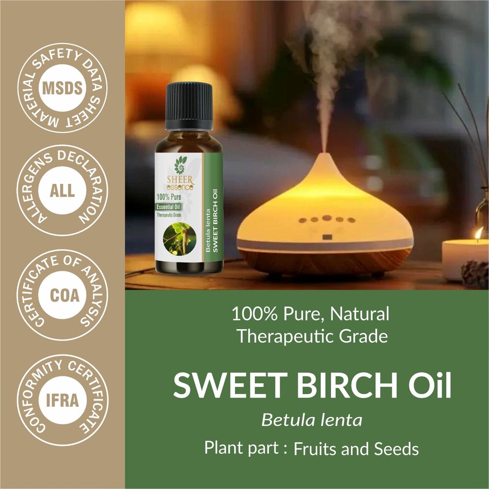 π³ Sweet Birch Oil Sweet birch oil is a bold, aromatic essential oil distilled from the bark of the sweet birch tree ( Betula lenta ), native to North America. It has a sharp, minty-sweet scent similar to wintergreen and is known for its refreshing, invigorating qualities. β¨ Quick Overview π Botanical Name: Betula lenta π± Plant Family: Betulaceae π¨ Color: Clear to pale yellow π Scent: Sharp, sweet, minty, and camphor-like Almost identical to wintergreen oil in aroma π‘ Common Uses: π¬οΈ Aromatherapy: Used for invigorating and refreshing blends Adds a crisp, cool top note to diffuser or room blends π§΄ Topical Use: Blended (well-diluted) into massage oils and balms Often used in sports rubs and natural liniments π² Home & Bath: Great in bath soaks and muscle blends Combines well with peppermint, eucalyptus, and cedarwood β Good To Know: Very potent βa little goes a long way Always dilute thoroughly before skin use Best stored in a cool, dark place to preserve freshness