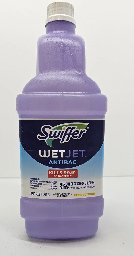 Keep your floors clean and your home safe with this Swiffer WetJet AntiBacterial Liquid Floor Cleaner Solutions. The fresh citrus scent will make cleaning a pleasure, while the EPA registration number ensures that you are using a product that is safe for your home and family. Each bottle contains a liquid cleaner solution that is perfect for disinfecting and sanitizing your floors. The Swiffer brand is known for its quality products, and this cleaner solution is no exception.