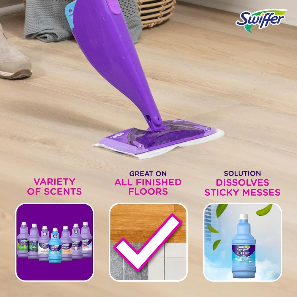Store New Arrivals Add to Favorite View Feedback Contact Swiffer Wetjet Multi-Purpose Floor Cleaner Solution with Febreze Refill, Hardwood Floor Cleaner, Lavender Scent, 1.25 Liter -42.2 Fl Oz (Pack of 2) Description Item model number 00037000265368 Item Volume 1250 Milliliters Is Discontinued By Manufacturer No Product Dimensions 6 x 5 x 4 inches; 5.84 Pounds Country of Origin USA Brand Swiffer Material Feature Natural Department Unisex-Adult Manufacturer Swiffer Scent Lavender Vanilla & Comfort Scent Specific Uses For Product Floor Size 42.25 Fl Oz (Pack of 2) 1. SAFE & FAST DRYING: This floor cleaner for mopping offers a safe and fast drying formula. This floor cleaning solution is safe for use across all hard sealed and finished surfaces - do not use on unfinished, oiled, or waxed wooden boards, non-sealed tiles, or carpeted floors because they may be water sensitive 2. PRE-MIXED CLEANING SOLUTION: The pre-mixed cleaning solution fights dirt and tough, sticky messes 3. NATURAL BEAUTY: Reveals the natural beauty of your floors 4. USE WITH SWIFFER WETJET: For great end results on your floor, use this wood floor cleaner with Swiffer WetJet mopping pads 5. VARIETY OF SCENTS: There's the perfect Swiffer WetJet solution for any cleaning need! Scents available: Fresh, Febreze Lavender, Gain Original Scent, Unstopables Fresh, Mr.Clean Clean Freak Lemon Zest, Antibacterial Fresh Citrus, Vinyl, Tile & Laminate, and Wood New & Improved Swiffer WetJet Multi-Surface Floor Cleaner is a pre-mixed cleaning solution made specially for the Swiffer WetJet all-in-one power mop. It's safe and fast drying formula dissolves dirt and tough, sticky messes to reveal the natural beauty of your floors. ABOUT US We offer the best prices around on high quality products. Our E-store includes media such as books, movies, music and games while offering electronics, toys, sporting apparel, clothing, tools, general home, garden items and more. SHIPPING We are always working hard to ensure your package arrives as soon as possible. Please understand that some factors like weather, high postal traffic, and the performance of shipping companies are outside of our control. We offer free shipping to the lower 48 states and ship within 2 business days of payment, usually sooner. We do not accept P.O. Boxes. Please provide a physical address. RETURNS We offer a 30-Day Return Policy on items which you are not completely satisfied with. You have the option for a full-refund or an exchange of the item. No returns are available on items shipped outside of the USA. PAYMENT We accept PayPal. CONTACT US This page content is yet to come Please ad us to your favorite seller and visit again later Thank You CUSTOMER SATISFACTION We try our very best to make sure every customer is completely satisfied. If there's a problem, message us! We're happy to help.